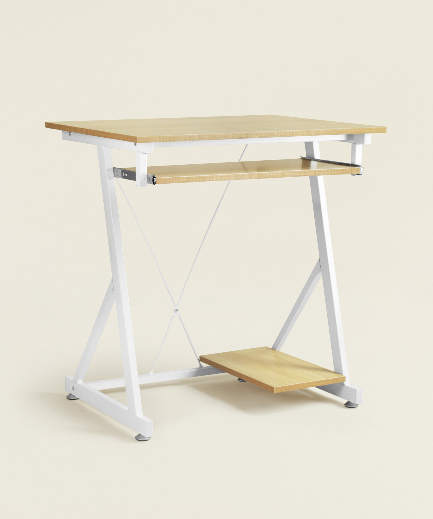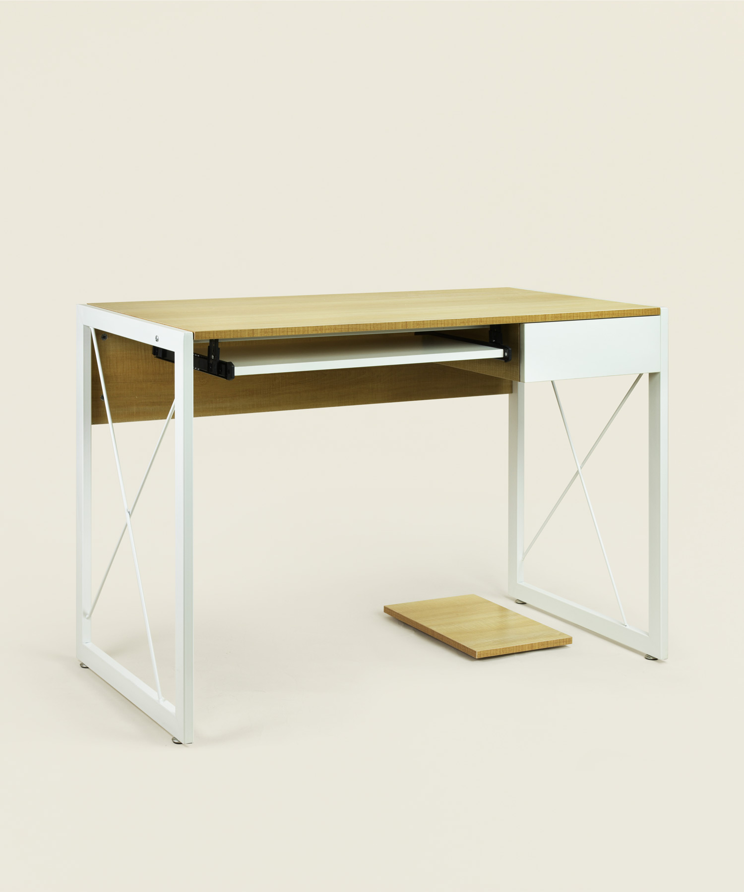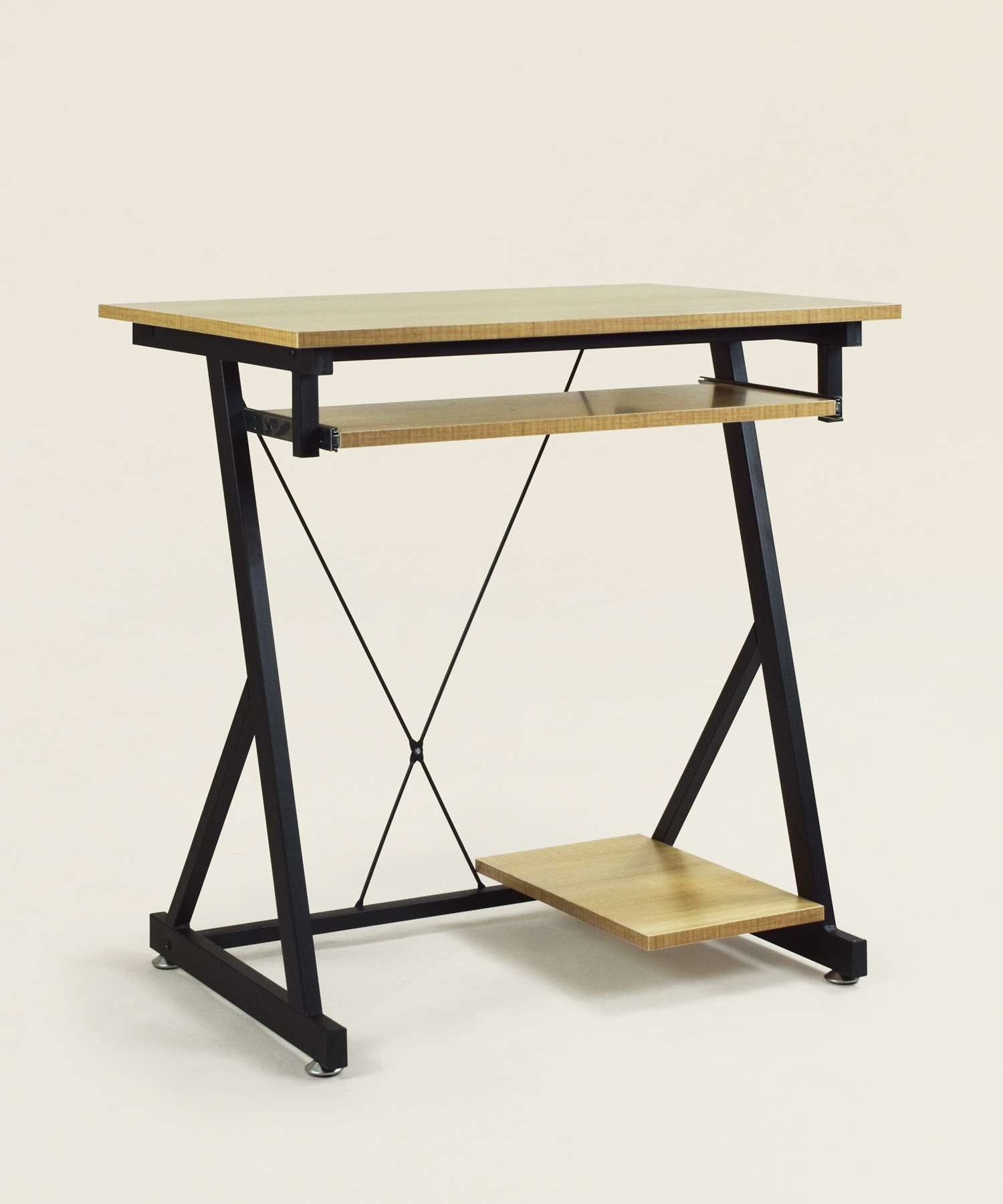 Γραφείο Corneli με ξύλινη επιφάνεια σε φυσικό χρώμα και μαύρο μεταλλικό σκελετό