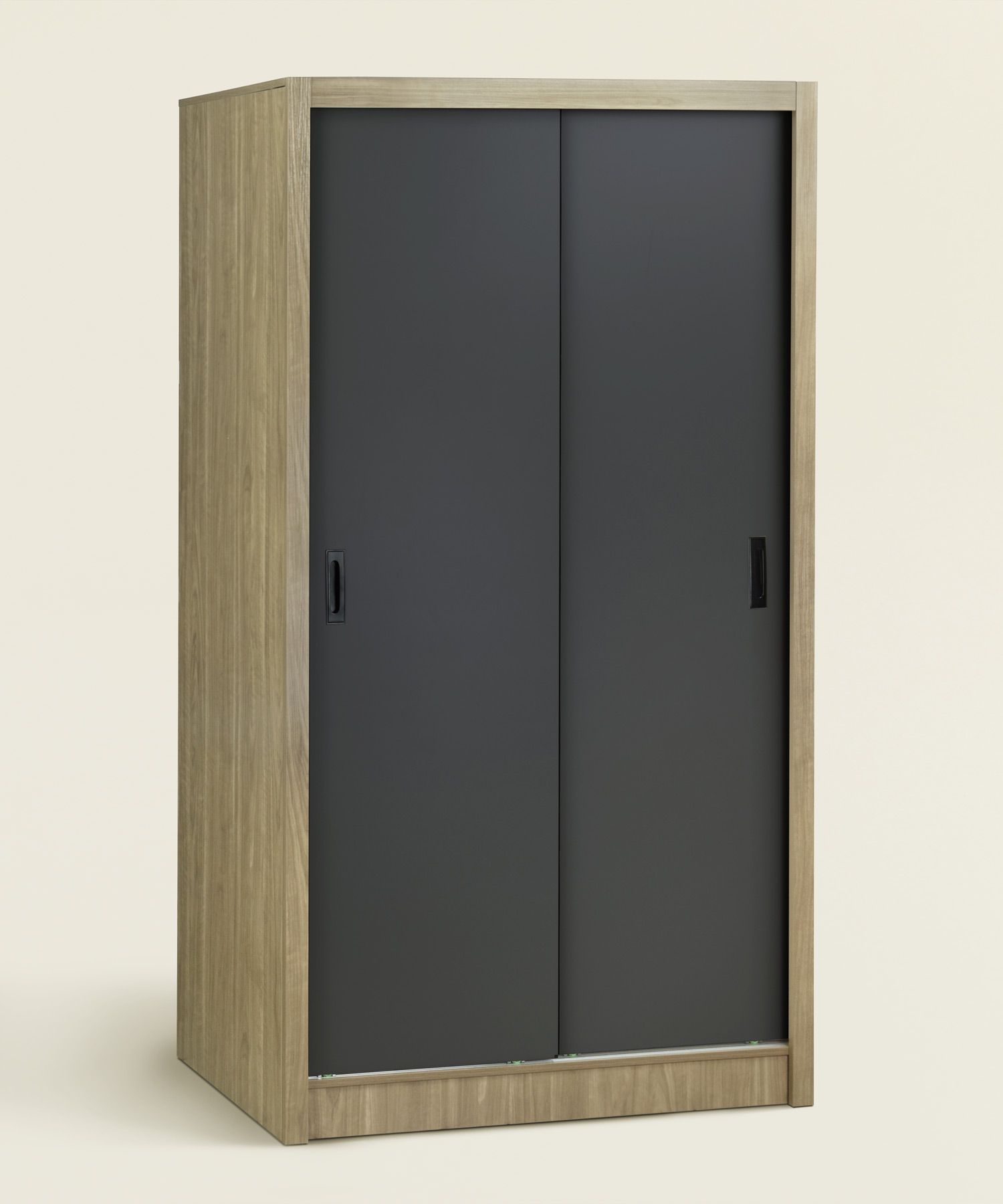 Ντουλάπα ξύλινη δίφυλλη με συρόμενες πόρτες σε φυσικό ξύλο και γκρι χρώμα