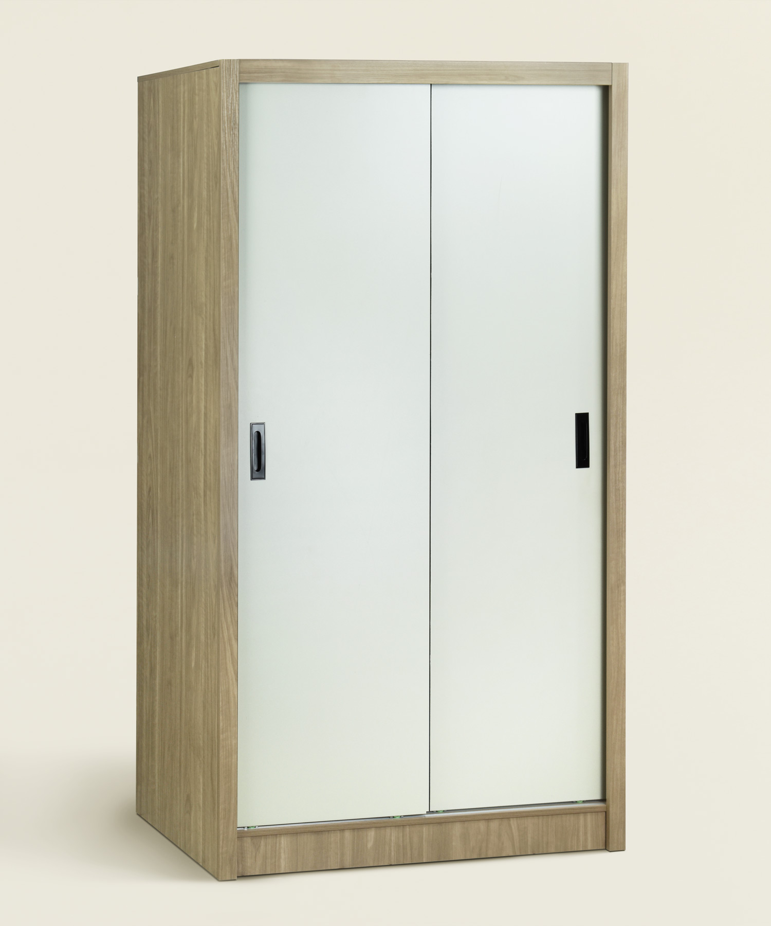 Ντουλάπα ξύλινη δίφυλλη με συρόμενες πόρτες σε διχρωμία φυσικό ξύλο και γκρι