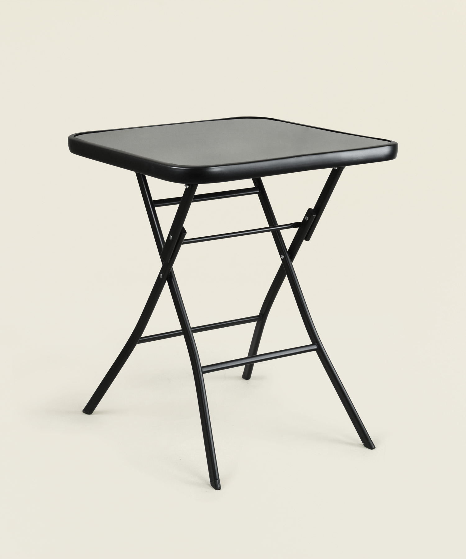Τραπέζι Belaria πτυσσόμενο τετράγωνο μεταλλικό σε μαύρο χρώμα με γυάλινη επιφάνεια