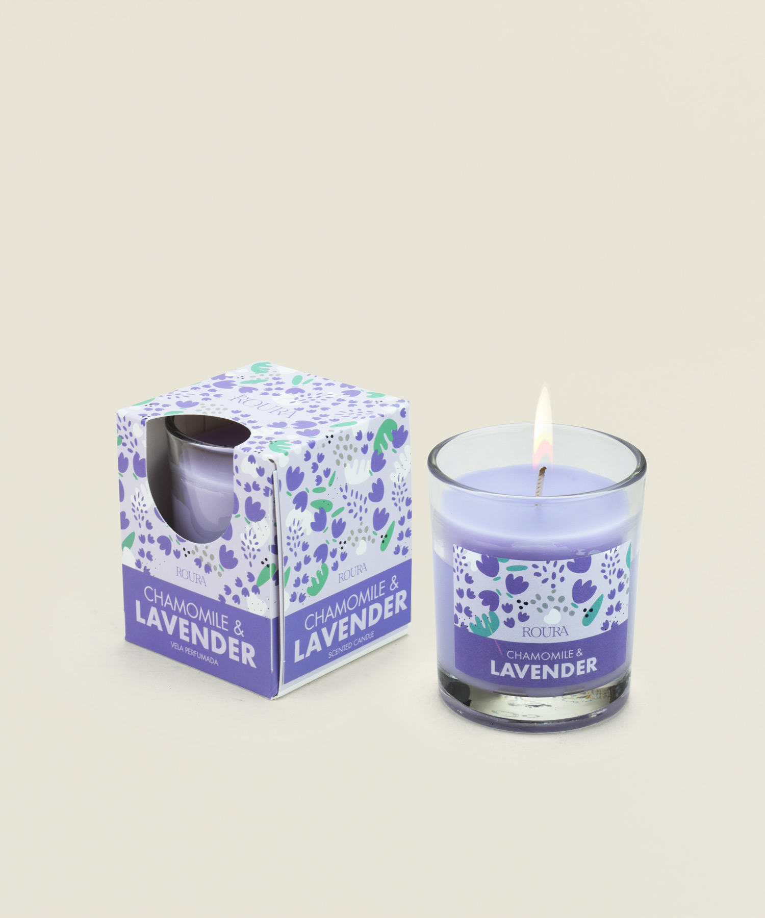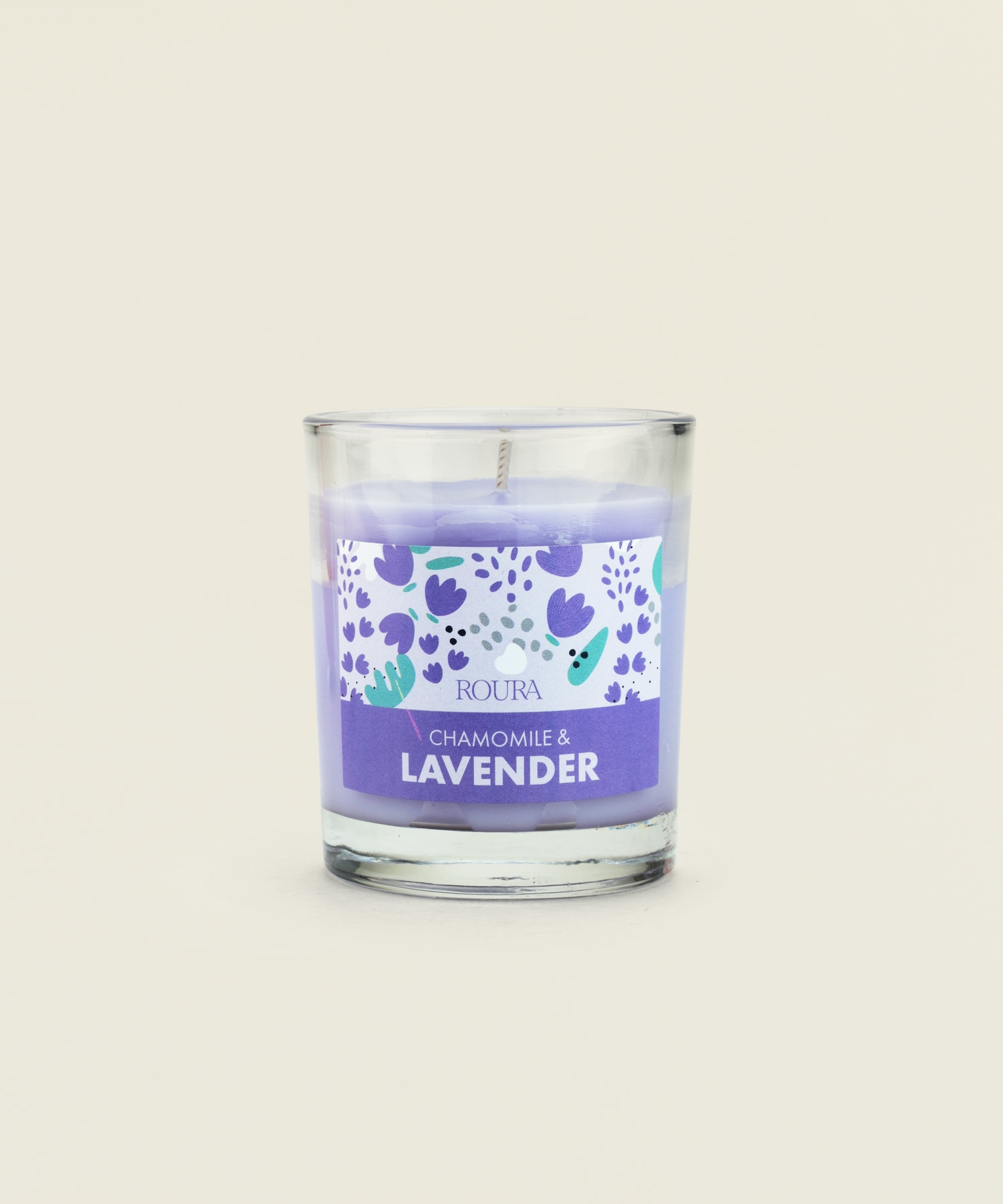 Αρωματικό κερί lavender 30 ωρών καύσης σε γυάλινο ποτήρι 8,5Χ7εκ.