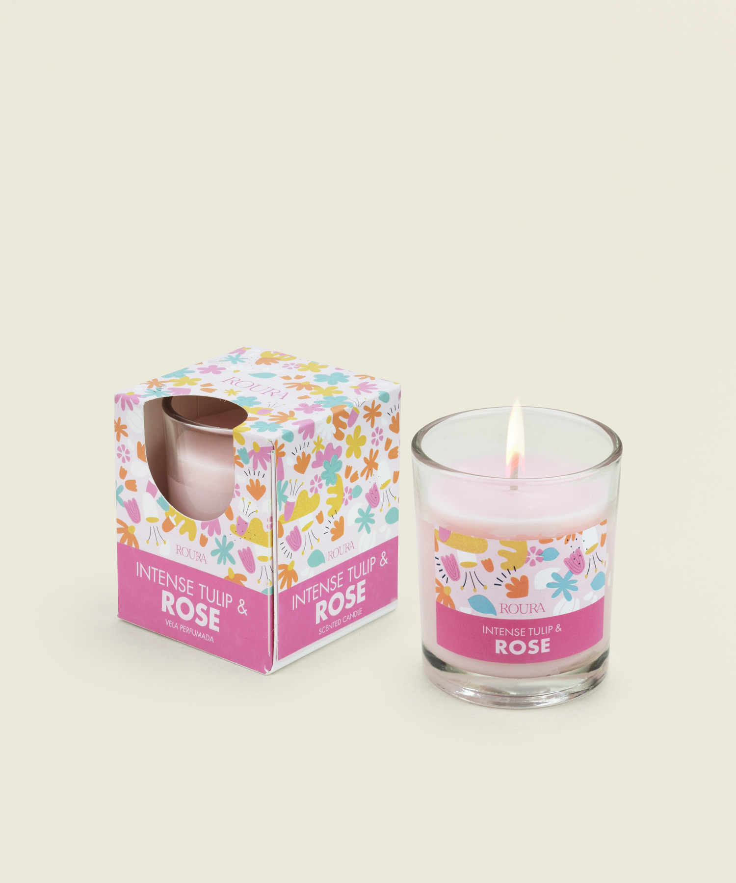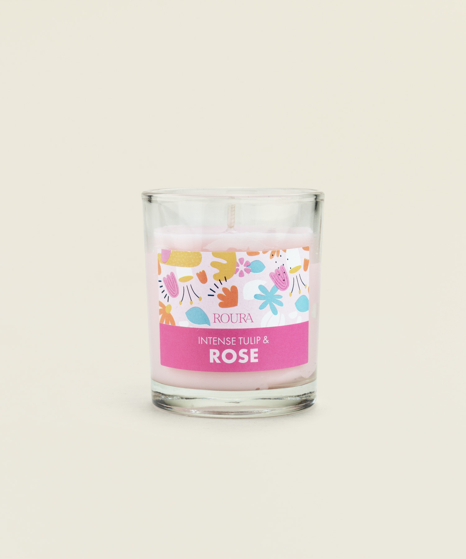Αρωματικό κερί tulip&rose 30 ωρών καύσης σε γυάλινο ποτήρι 8,5Χ7εκ.