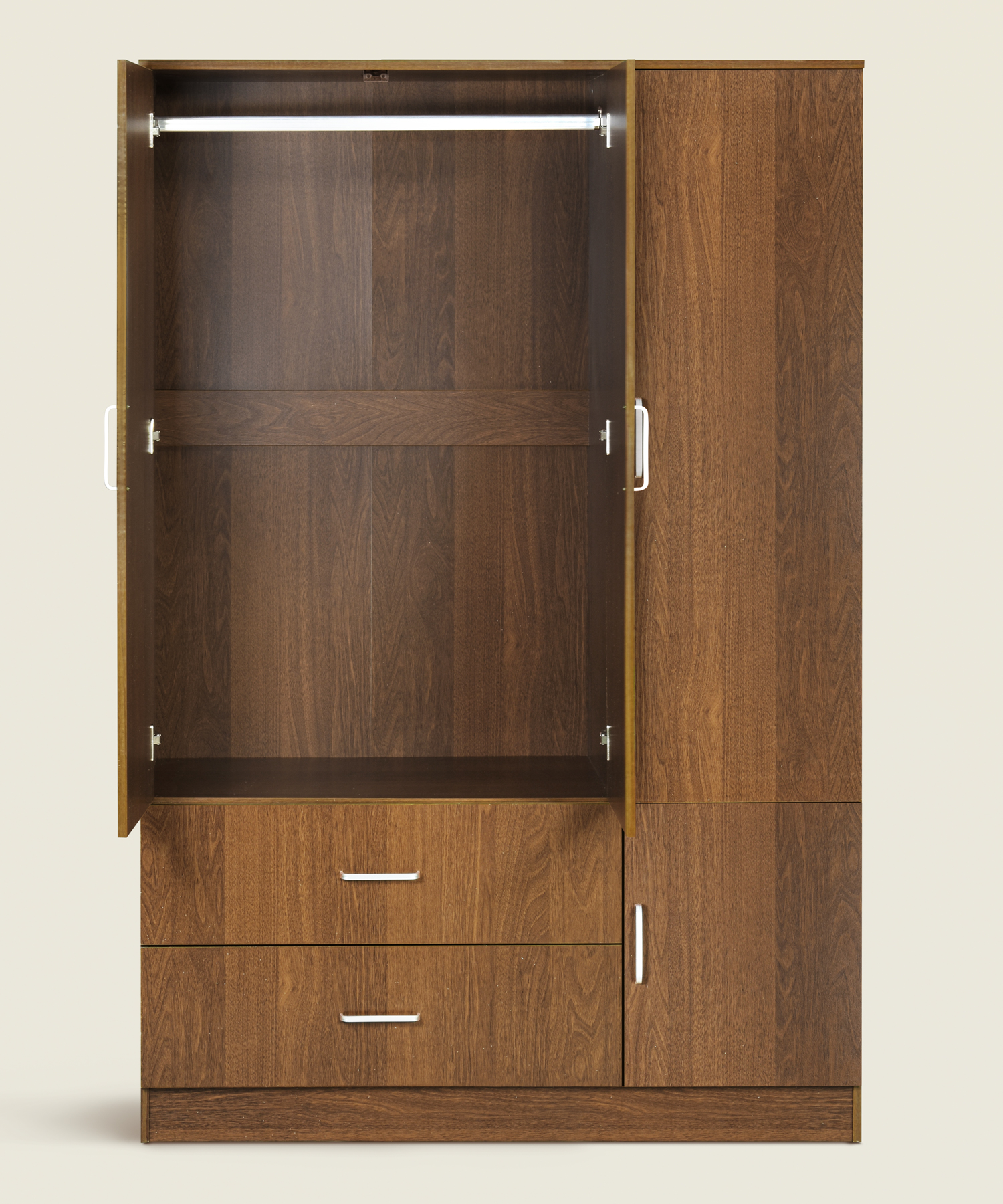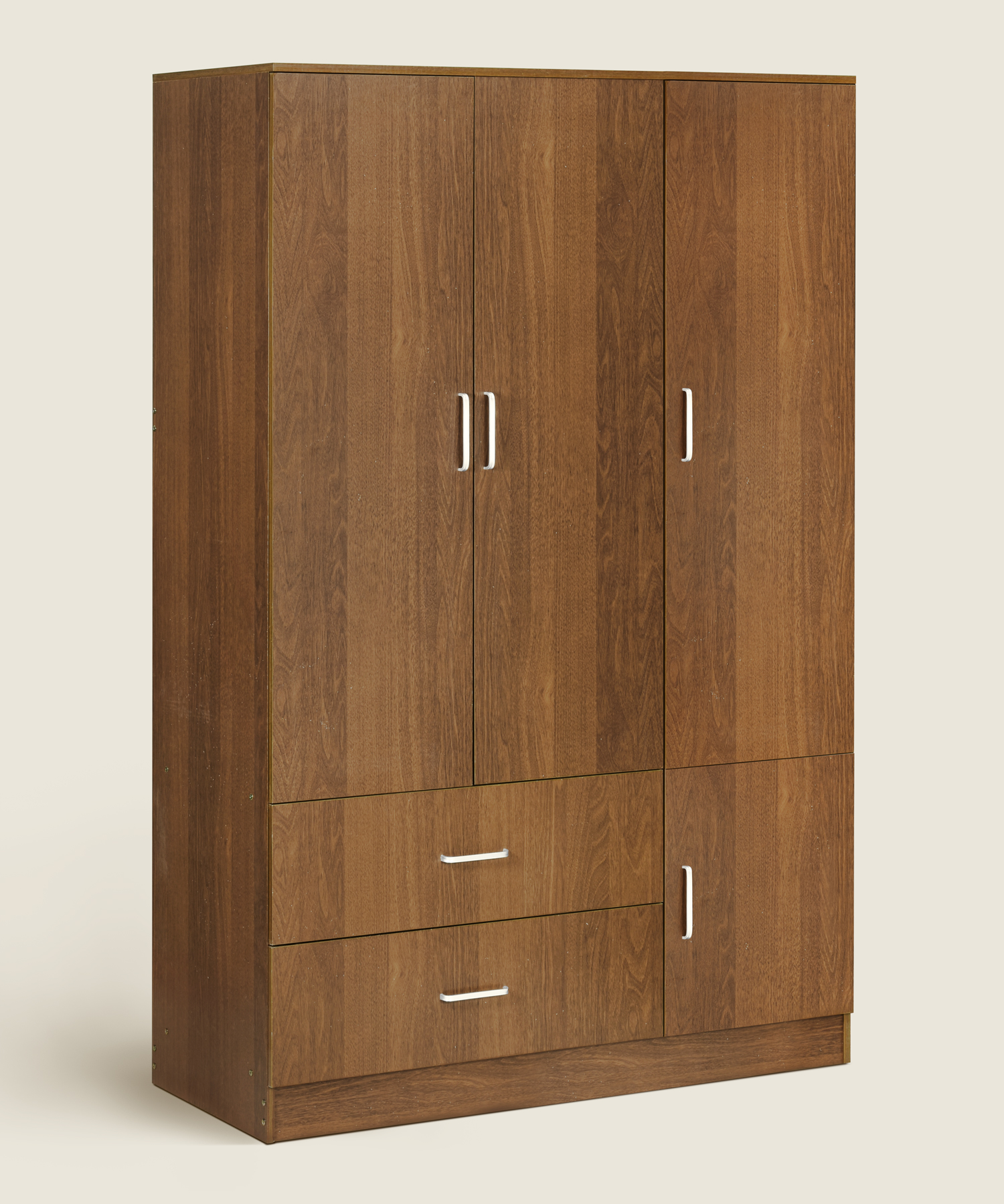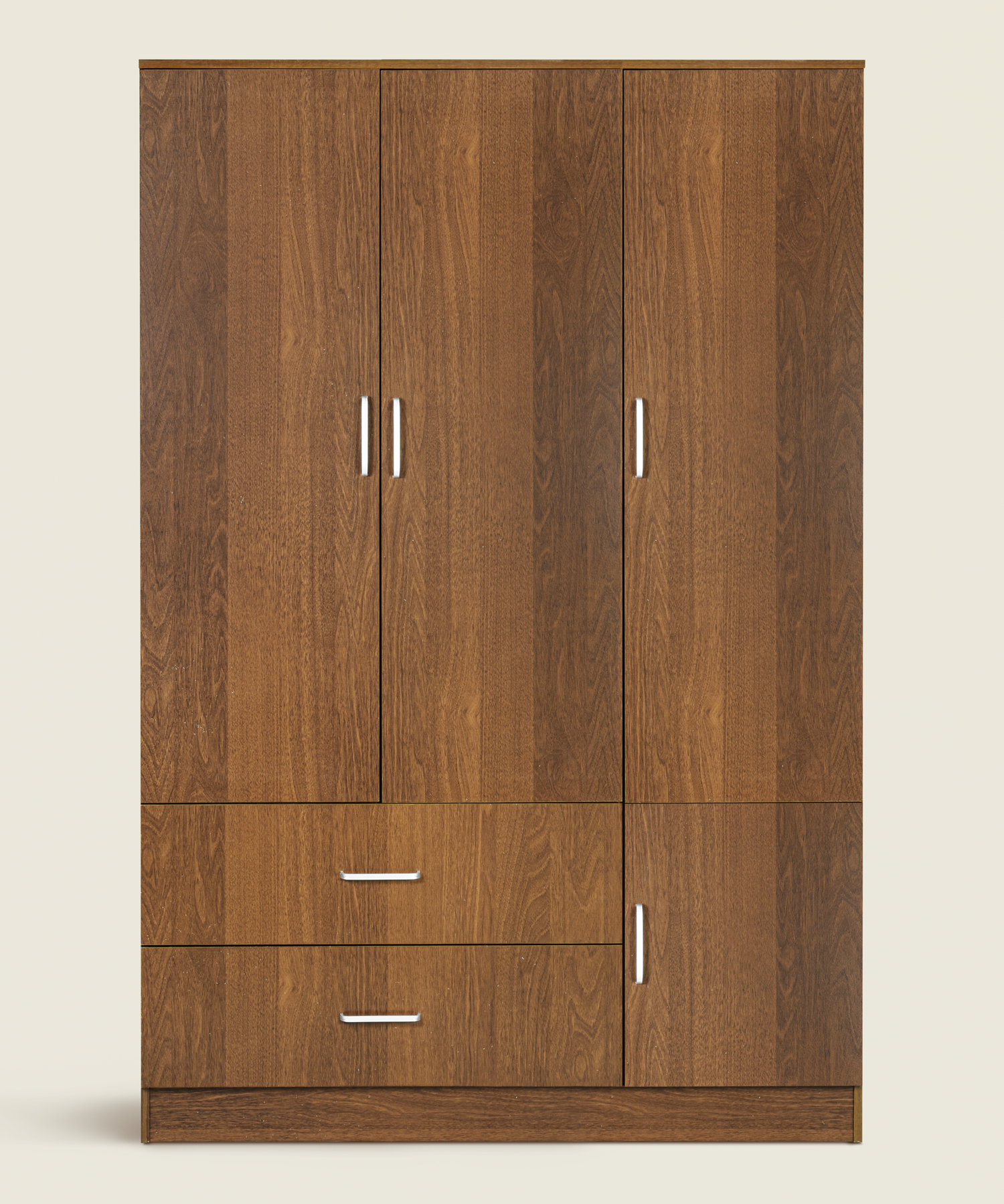 Ντουλάπα Terero ξύλινη τρίφυλλη με συρτάρια σε χρώμα καρυδί