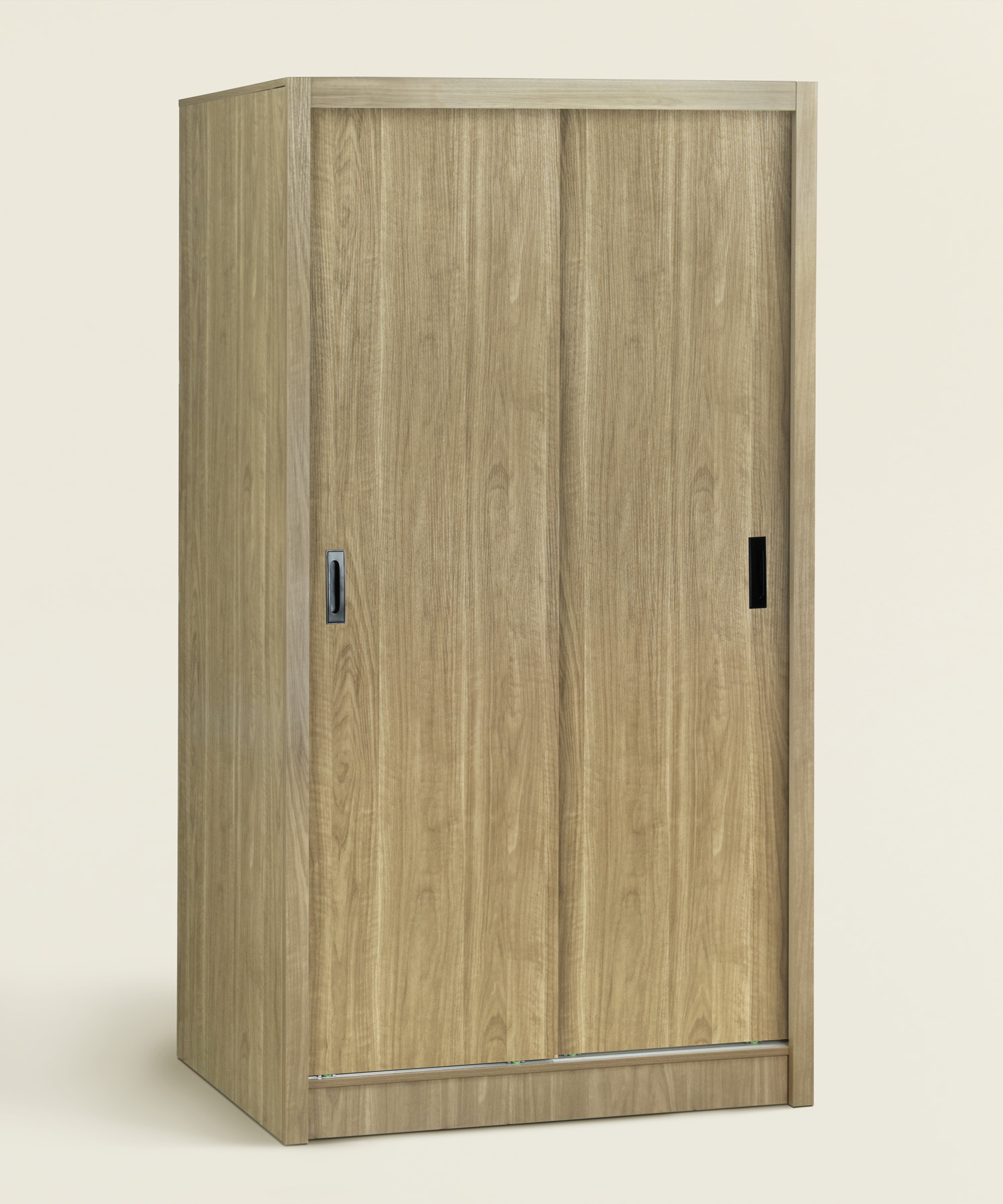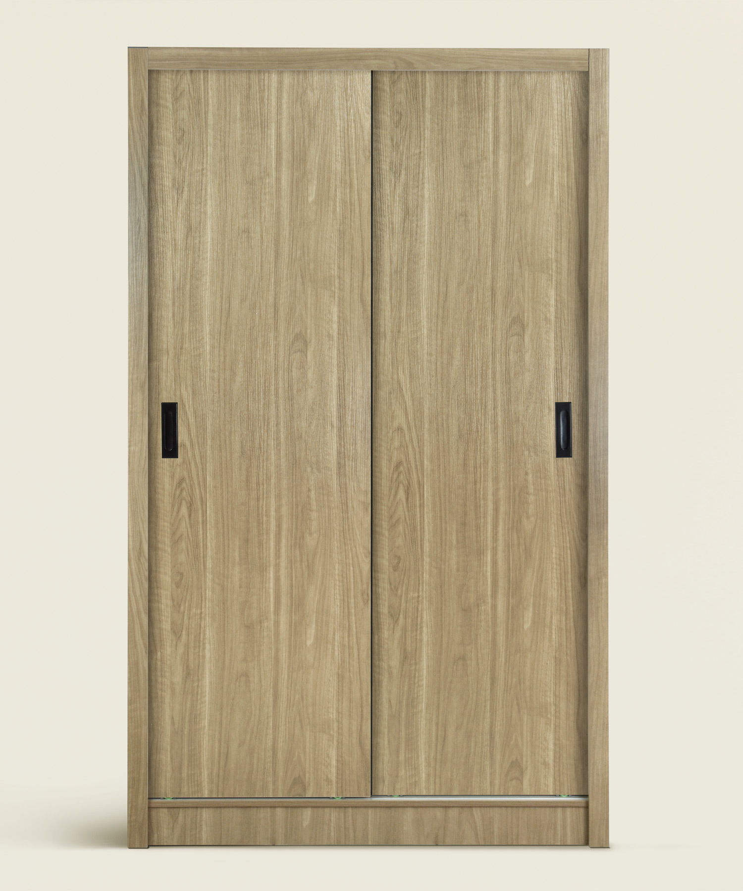 Ντουλάπα ξύλινη δίφυλλη με συρόμενες πόρτες σε χρώμα φυσικό