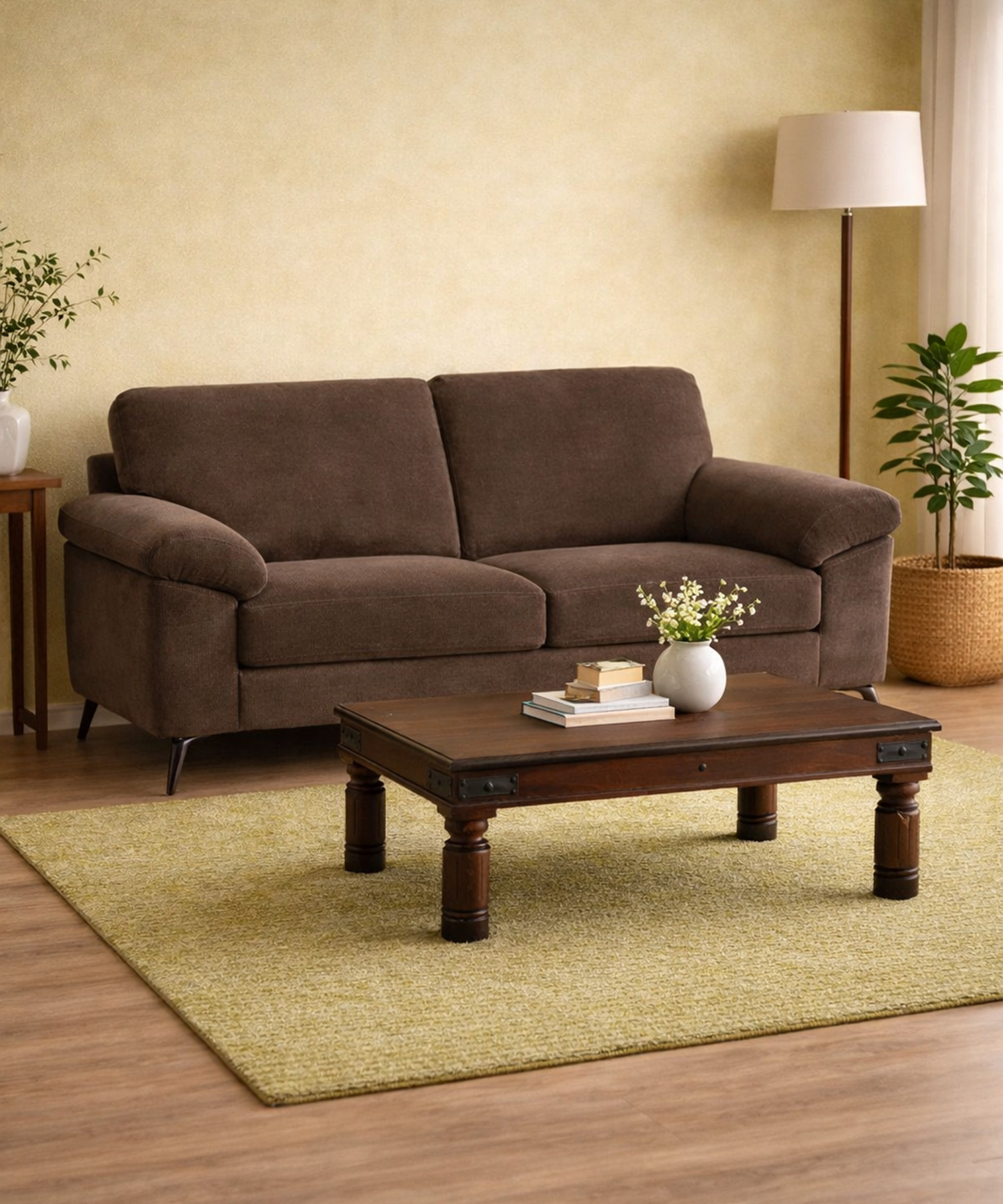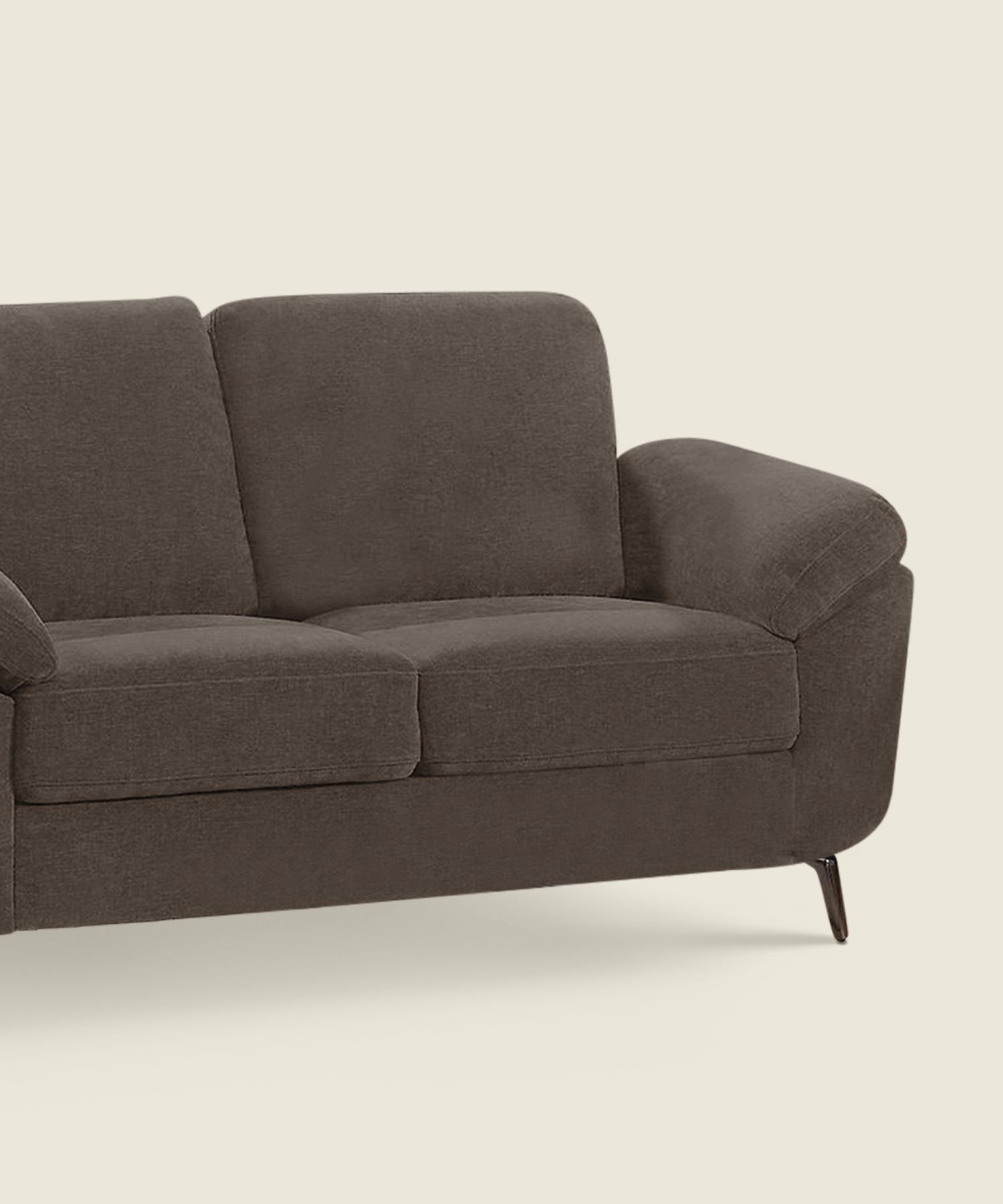 Υφασμάτινος διθέσιος καναπές σε καφέ απόχρωση, σχεδιασμένος για άνετο και σταθερό κάθισμα. Ιδανικός για καθημερινή χρήση σε καθιστικό ή σαλόνι ή επαγγελματικούς χώρους, γραφεία, ιατρεία ή χώρους φιλοξενίας.