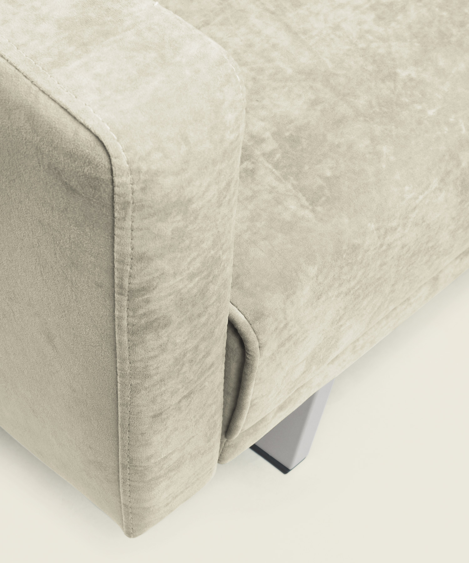 Ειδικές πληροφορίες: Με κάθετες ραφές και μεταλλικά πόδια, που ενισχύουν το μοντέρνο του ύφος.