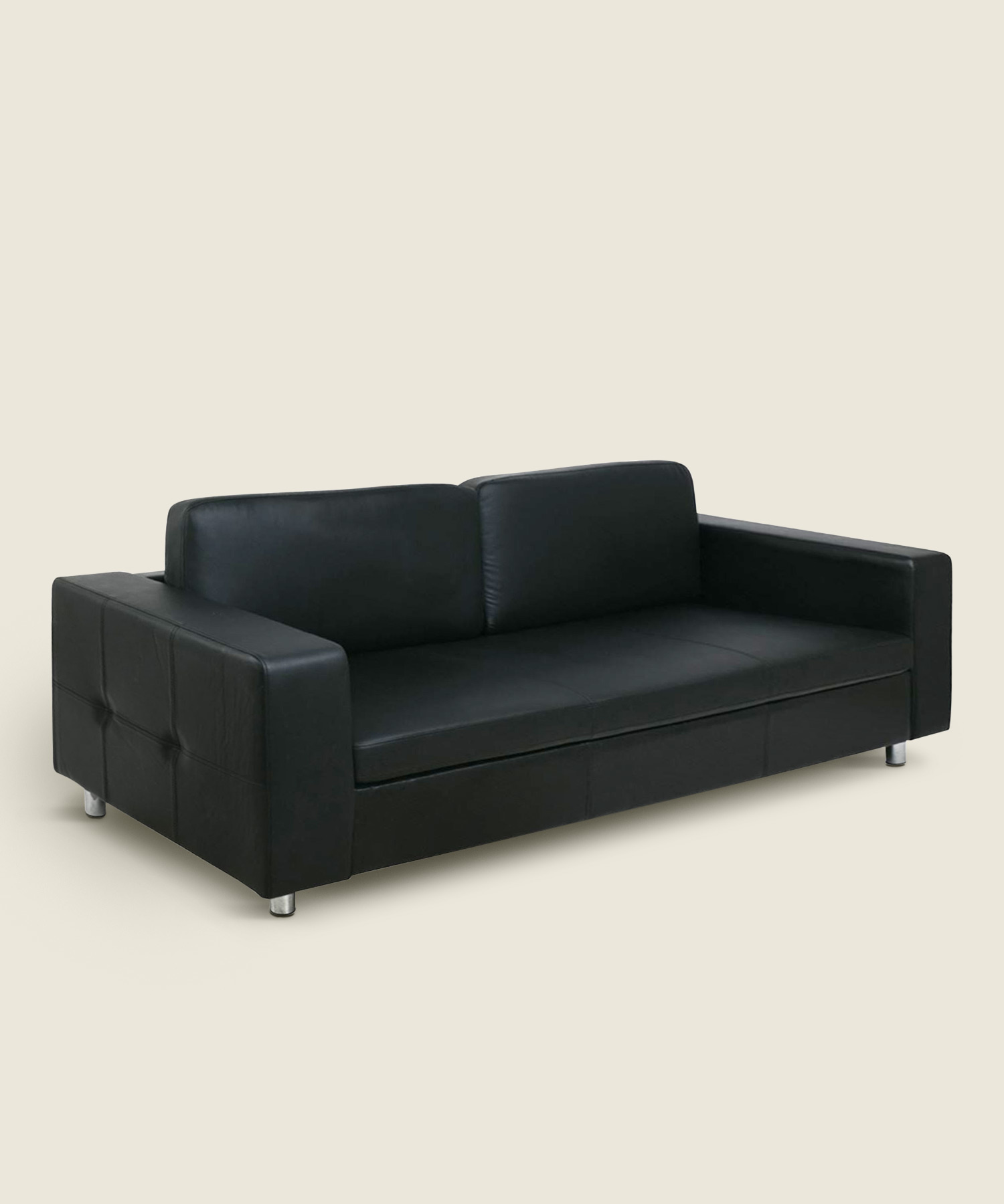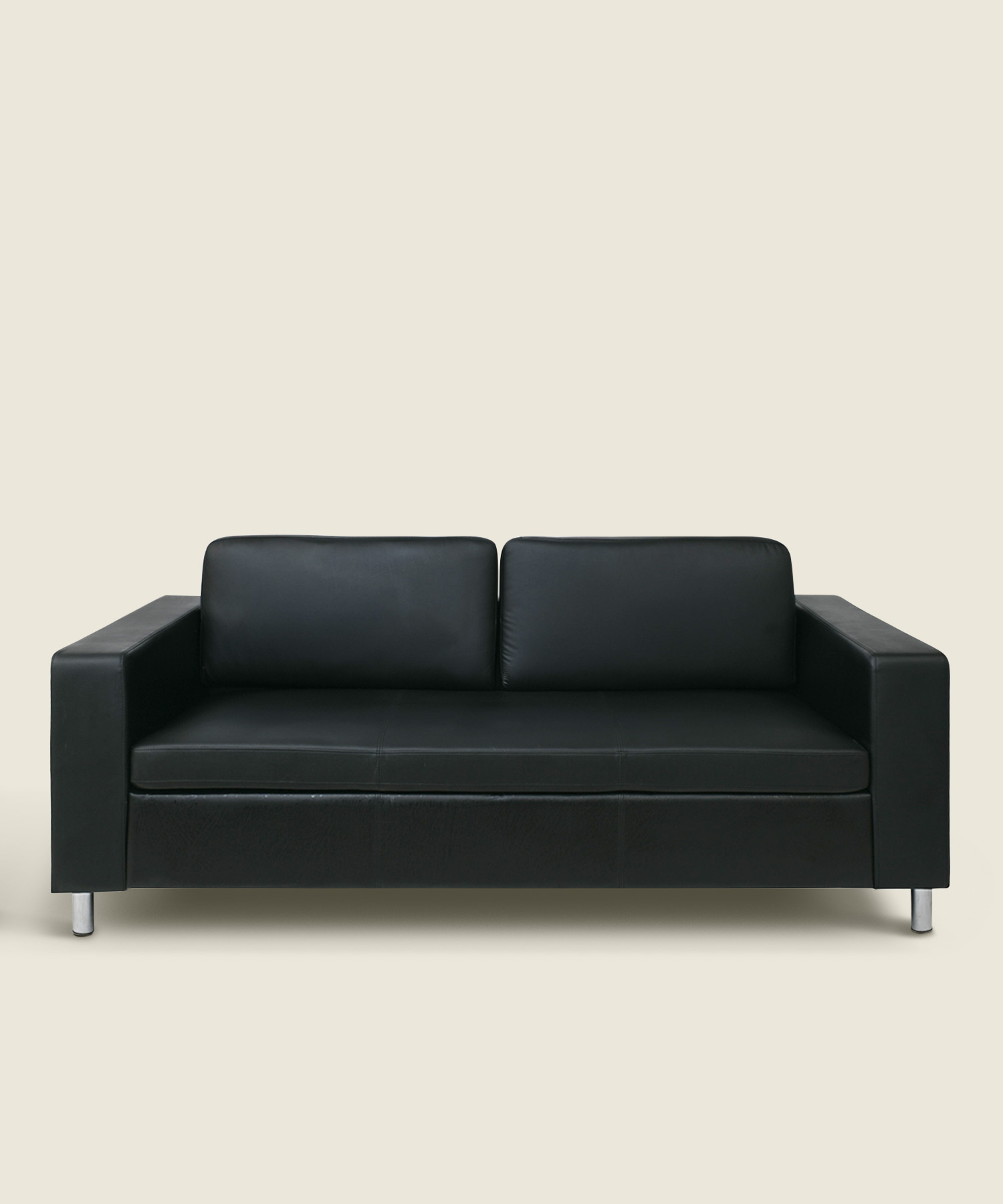 Τριθέσιος καναπές από τεχνητό δέρμα σε μαύρη απόχρωση, σχεδιασμένος για πρακτική και ανθεκτική χρήση σε οικιακούς και επαγγελματικούς χώρους.