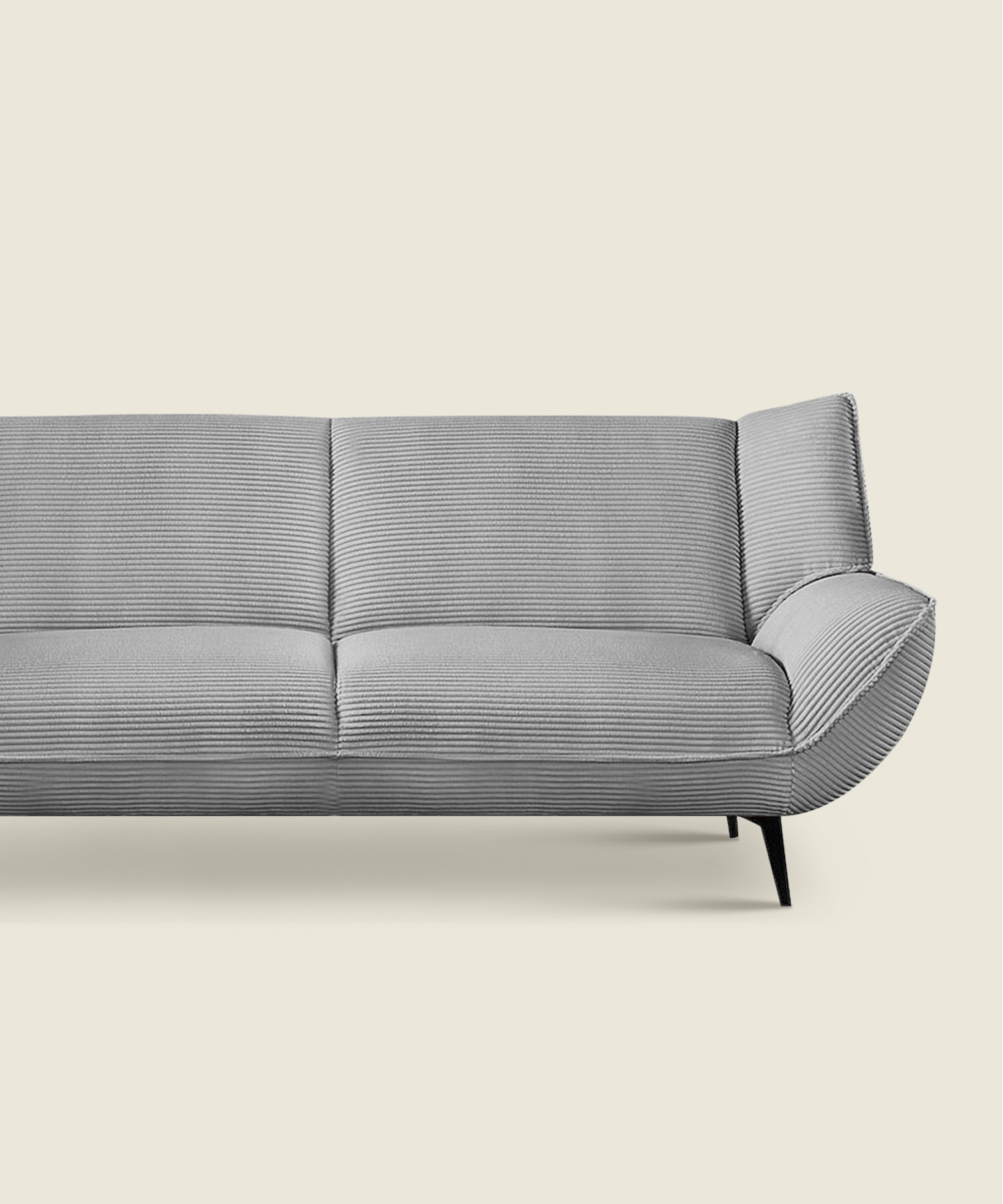 Τριθέσιος καναπές Rowan με επένδυση από ύφασμα κοτλέ σε γκρι χρώμα, κατάλληλος για καθημερινή χρήση, προσφέροντας περισσότερες θέσεις καθίσματος και εξυπηρετώντας άνετα μεσαίους και μεγάλους χώρους.