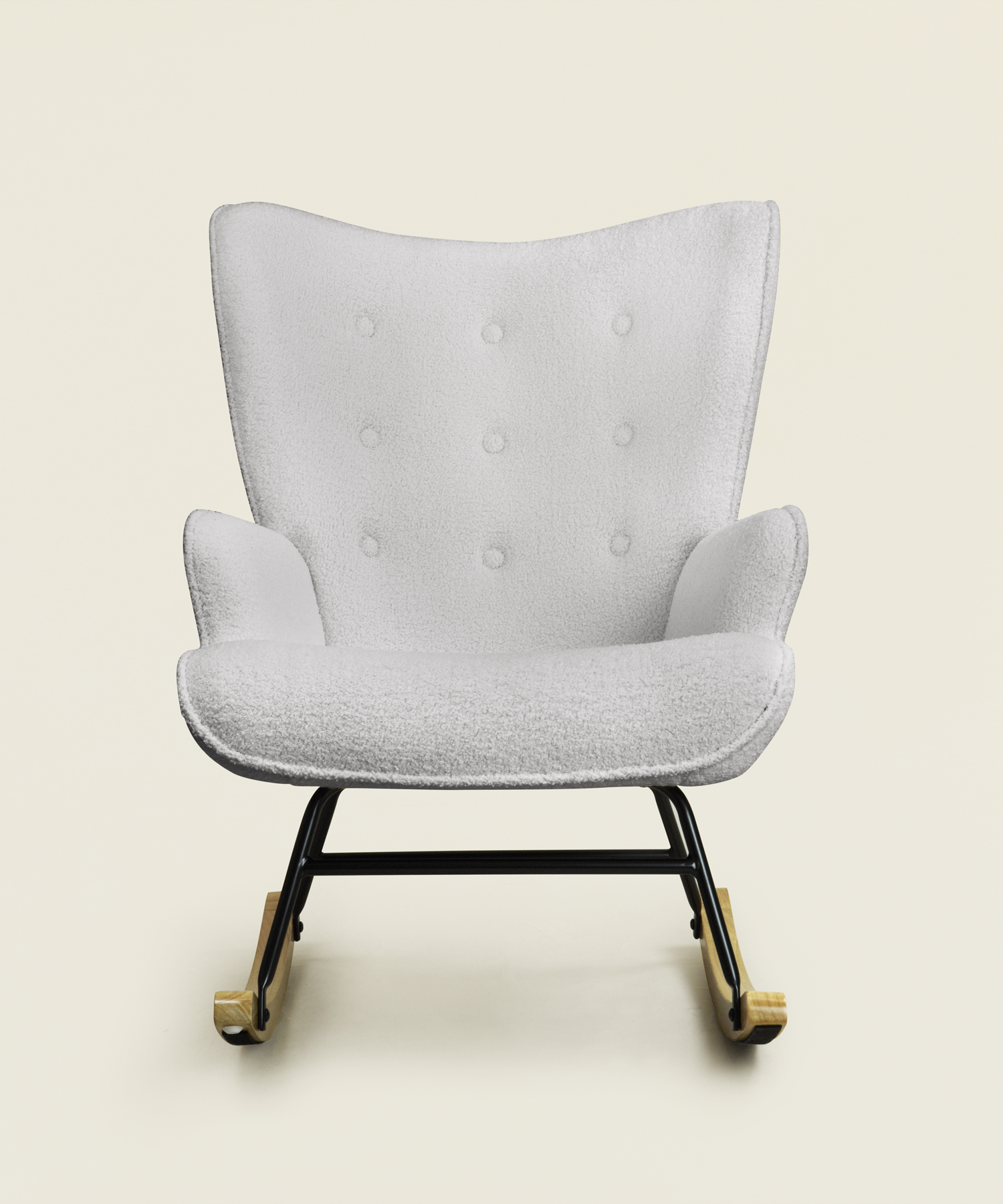 Η κουνιστή πολυθρόνα Lesli σε γκρι ύφασμα teddy συνδυάζει άνεση, ζεστή αισθητική και χαλαρωτική κίνηση, προσφέροντας ένα κομψό και λειτουργικό κάθισμα που ταιριάζει ιδανικά σε σαλόνια, υπνοδωμάτια και γωνιές ανάγνωσης.