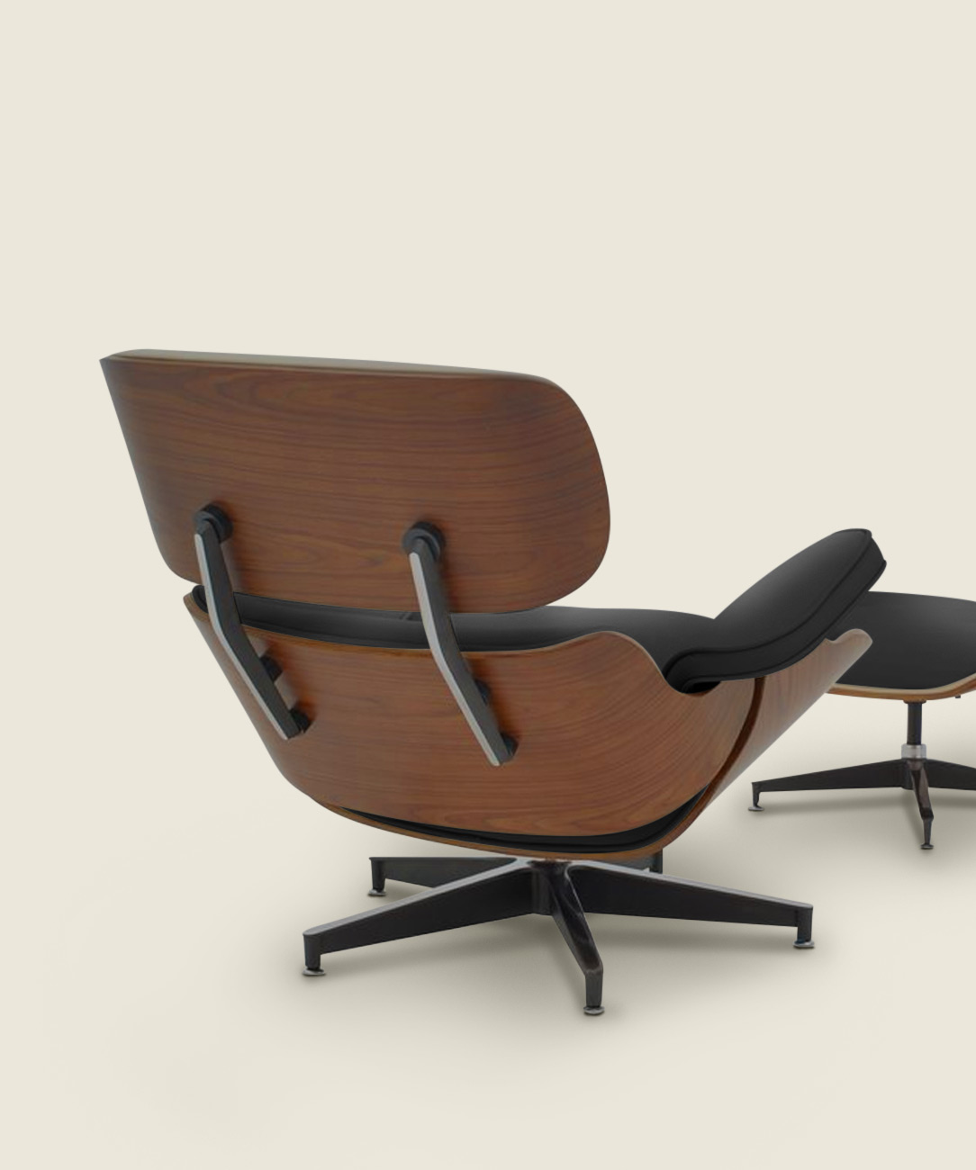Η πολυθρόνα με ανάκλιση και το αντίστοιχο περιστρεφόμενο σκαμπώ αποτελούν ένα κομψό και άνετο σετ που συνδυάζει μαύρο τεχνητό δέρμα, καμπύλες ξύλινες επιφάνειες σε καρυδί απόχρωση και μαύρη μεταλλική βάση, προσφέροντας υψηλή αισθητική και μέγιστη χαλάρωση.