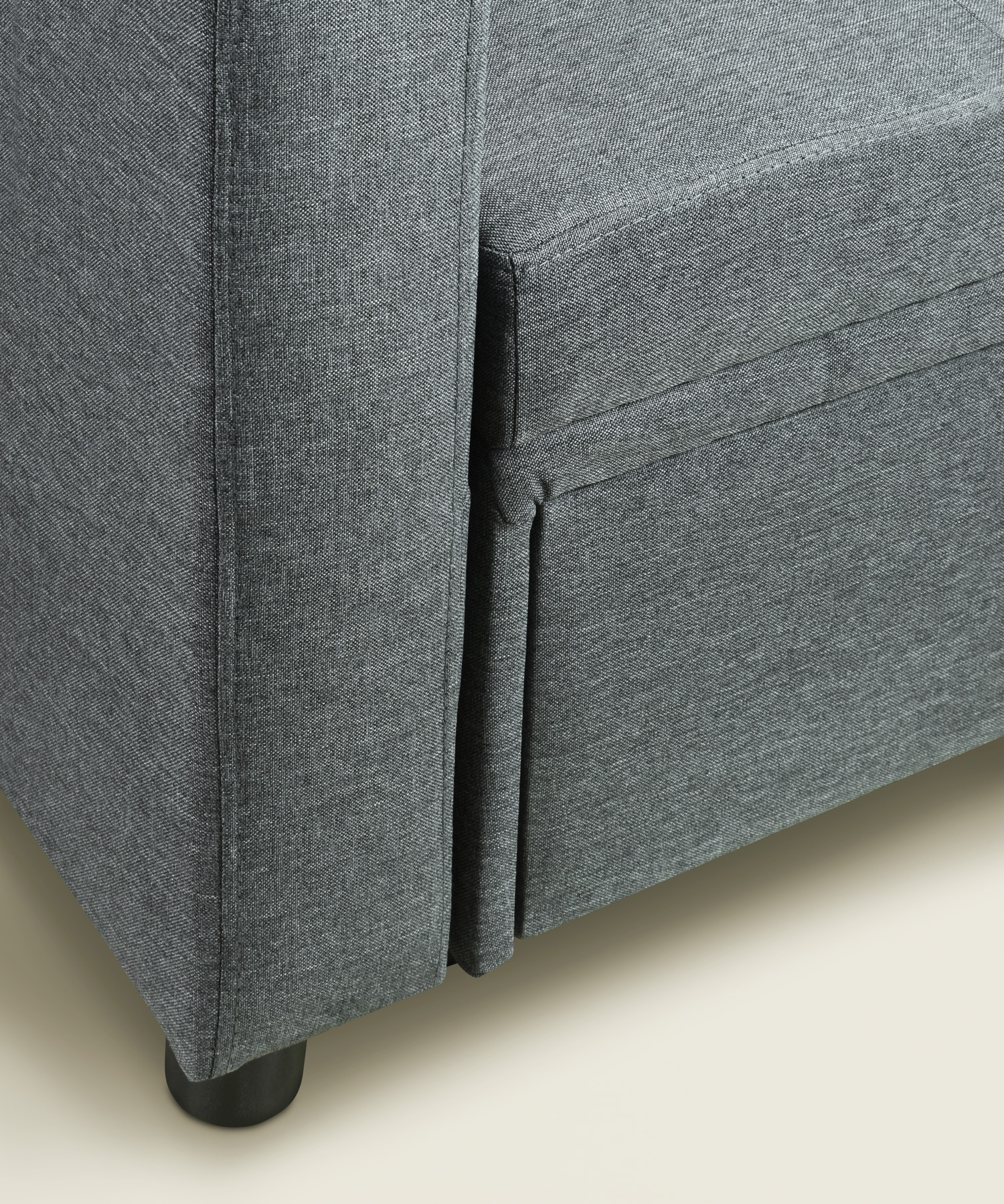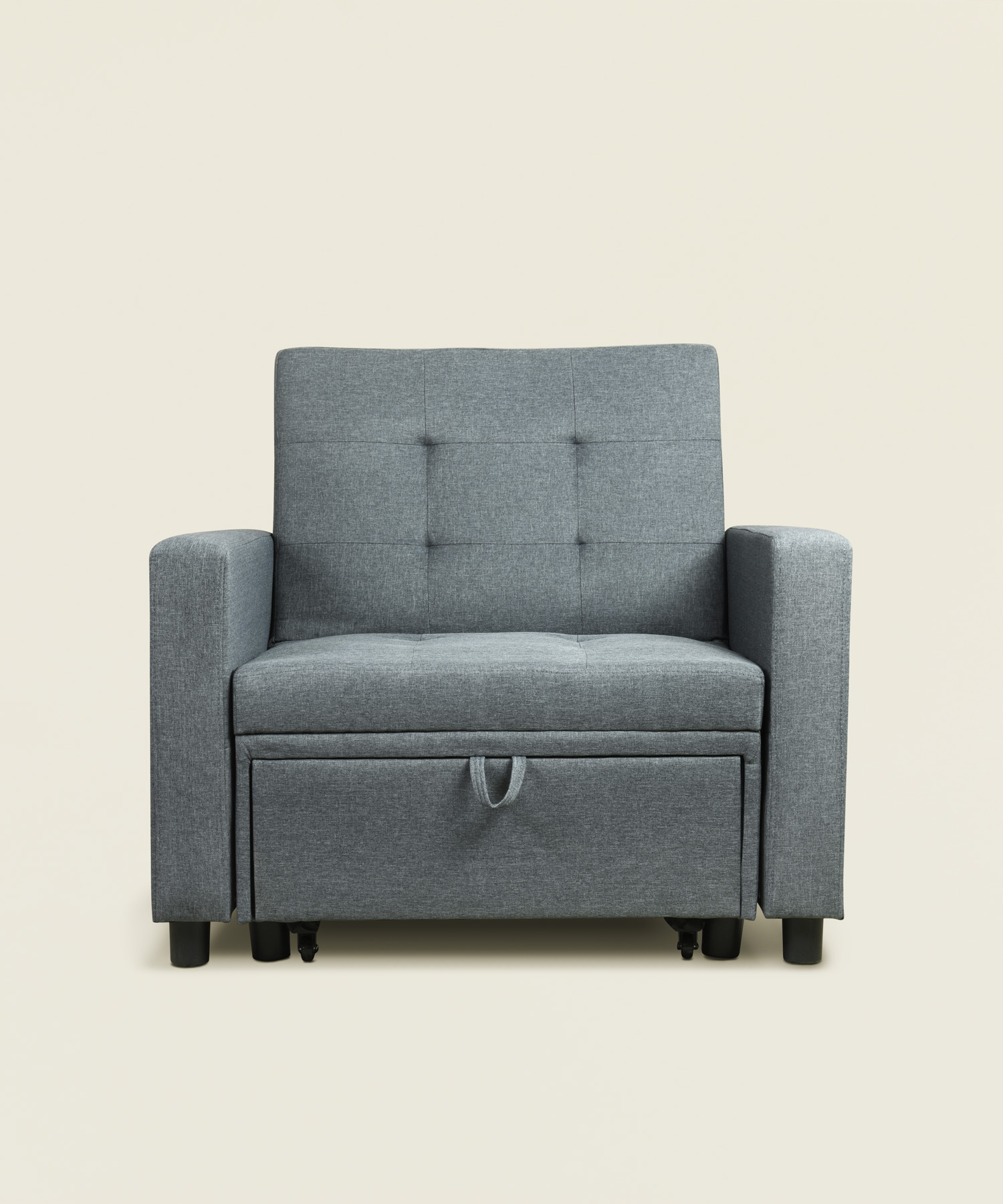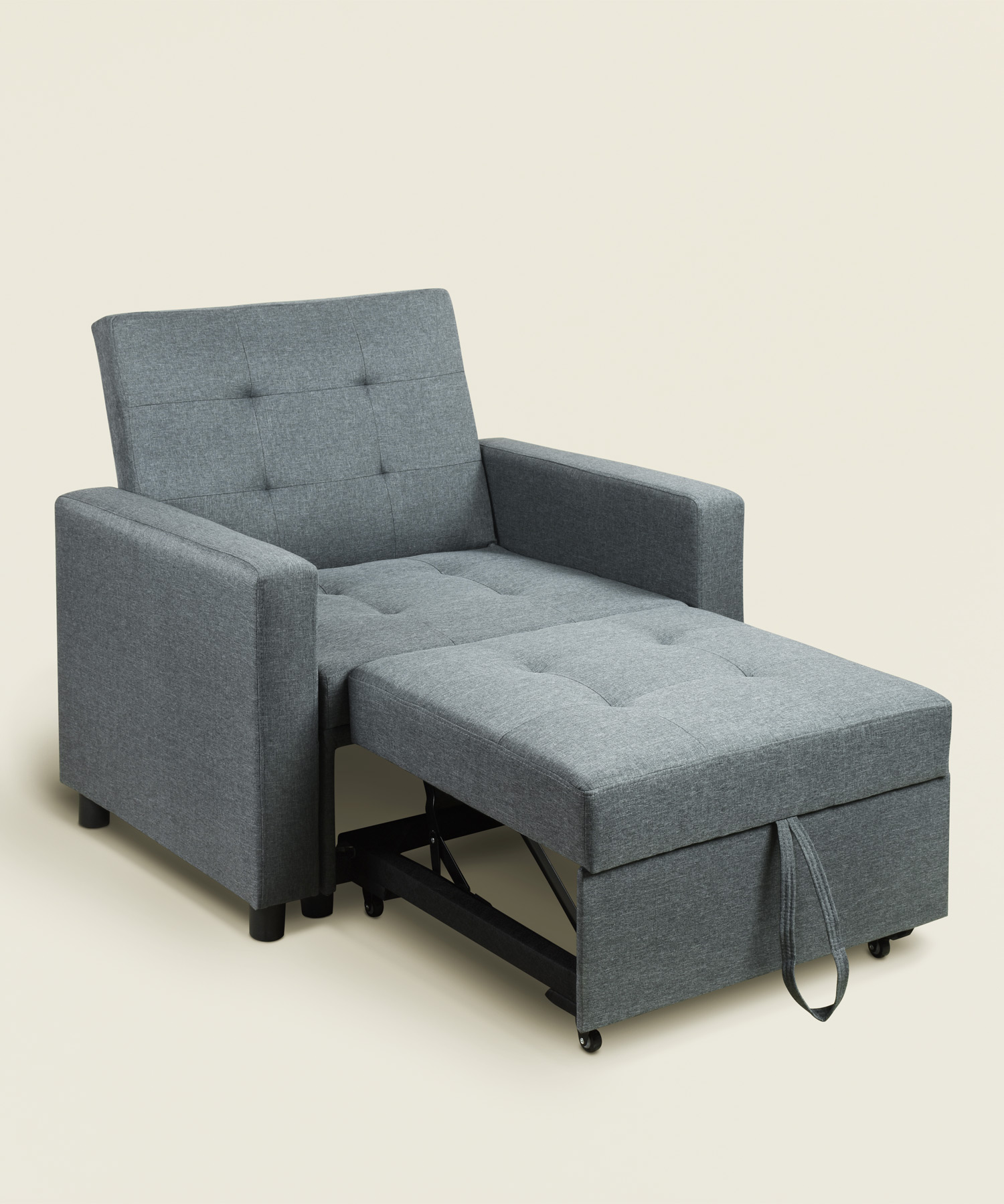 Η πολυθρόνα κρεβάτι Bernis συνδυάζει πρακτικότητα και άνεση, αλλάζοντας εύκολα σε μονό κρεβάτι. Η υφασμάτινη επένδυση σε σκούρο γκρι προσφέρει μοντέρνο χαρακτήρα, ιδανική για μικρούς χώρους, γραφεία, στούντιο ή δωμάτια φιλοξενίας.