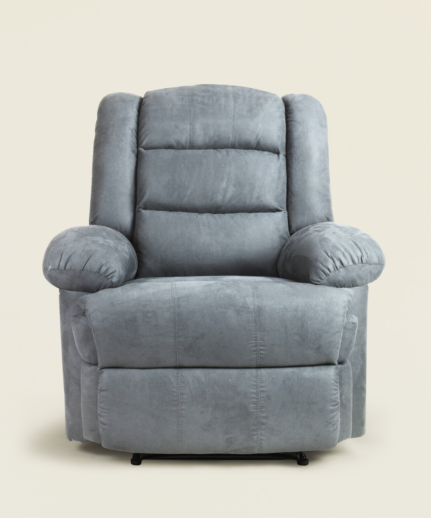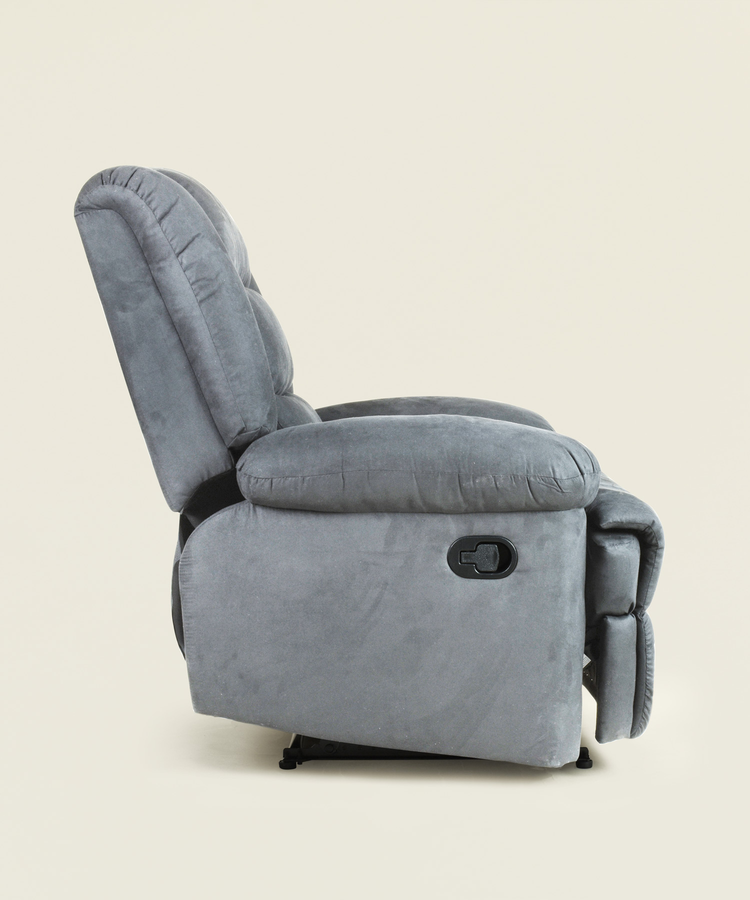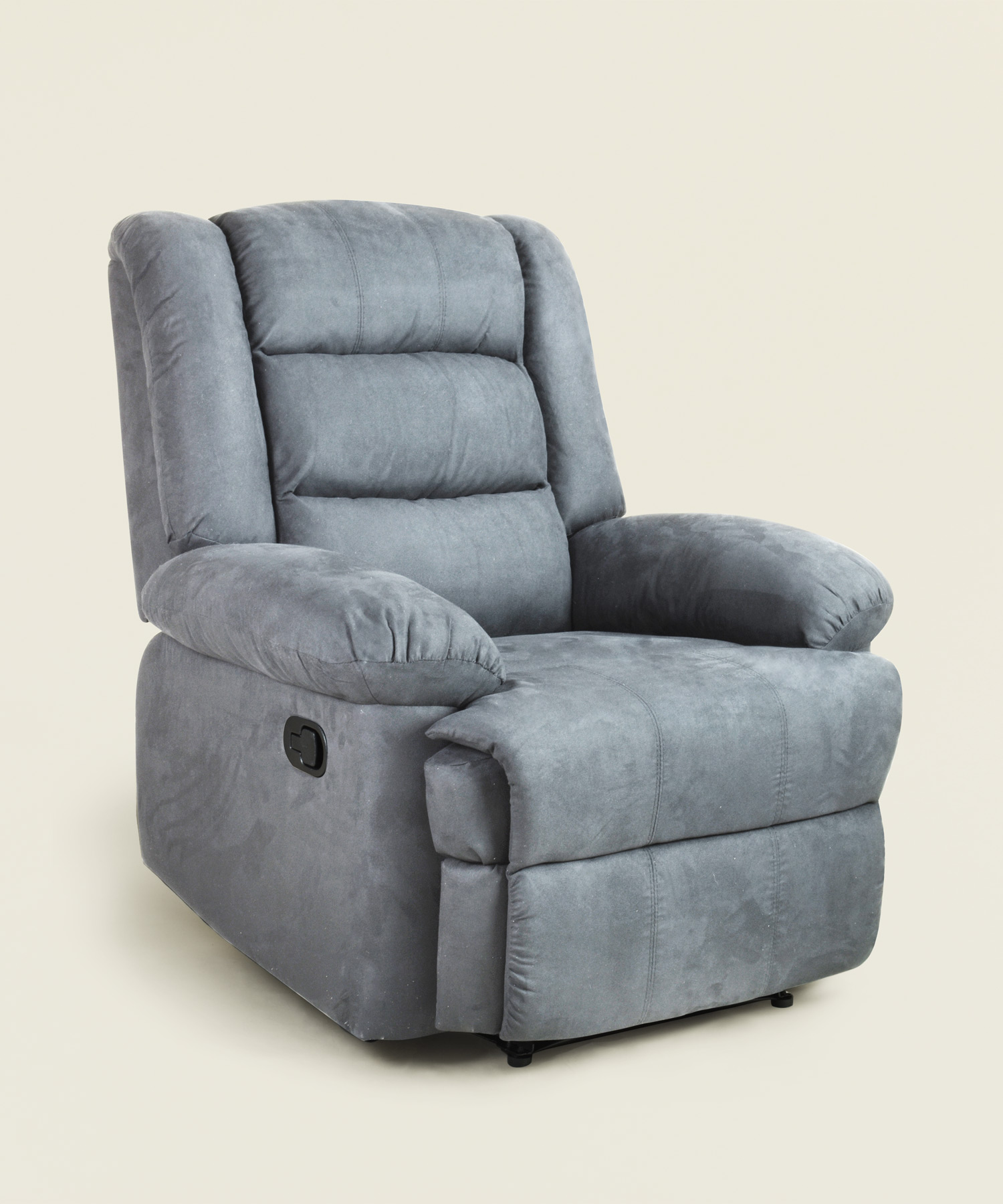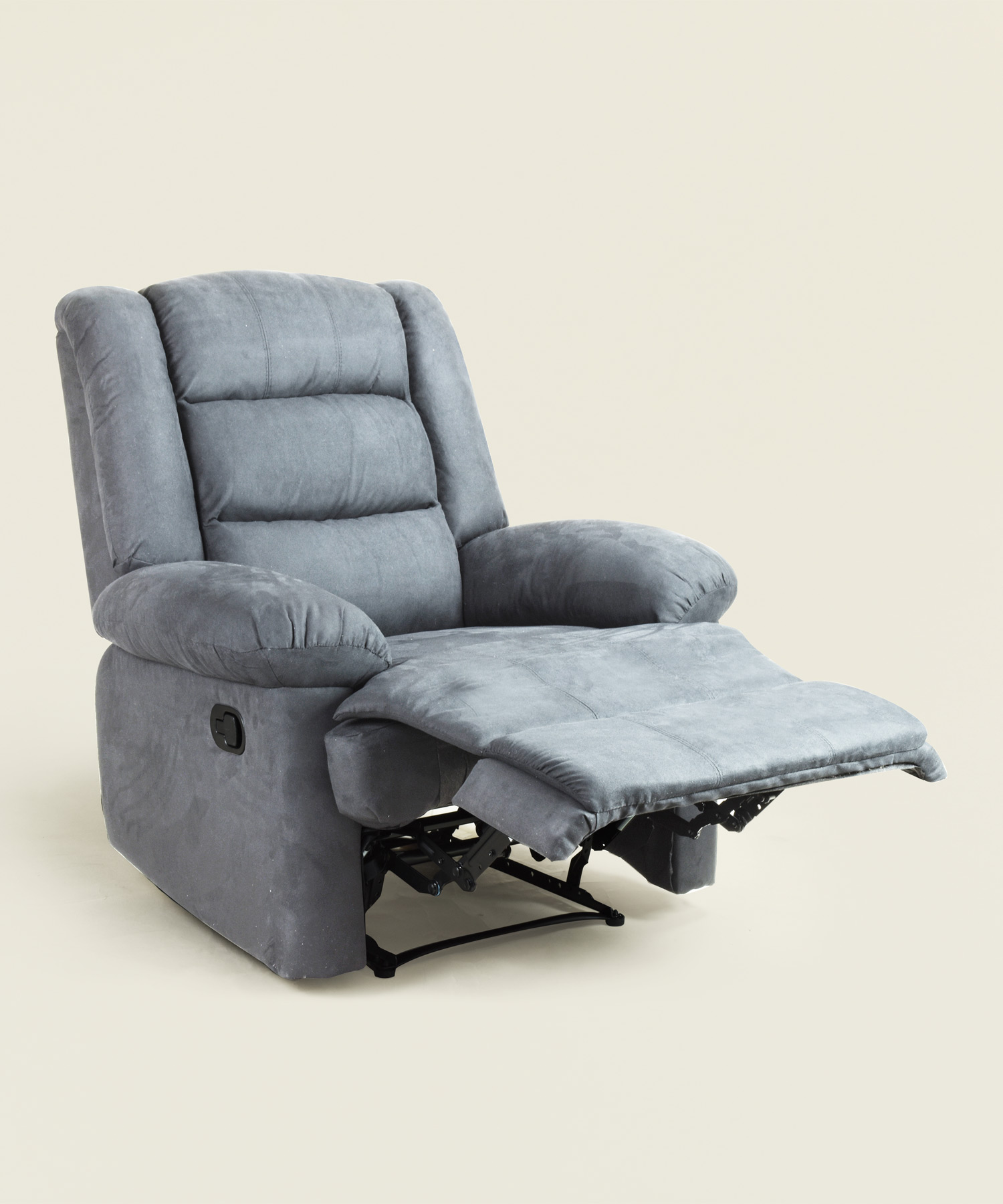 Η πολυθρόνα Dorsey σε γκρι ύφασμα προσφέρει υψηλή άνεση και λειτουργικότητα, διαθέτοντας μηχανισμό ανάκλισης και εργονομικό σχεδιασμό που την καθιστούν ιδανική για στιγμές χαλάρωσης στο σαλόνι ή το καθιστικό.