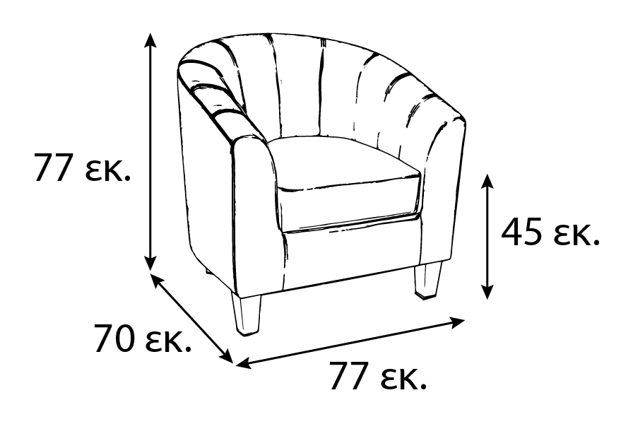Διαστάσεις: Μήκος 77εκ. Πλάτος 70εκ. Ύψος: 77κ.