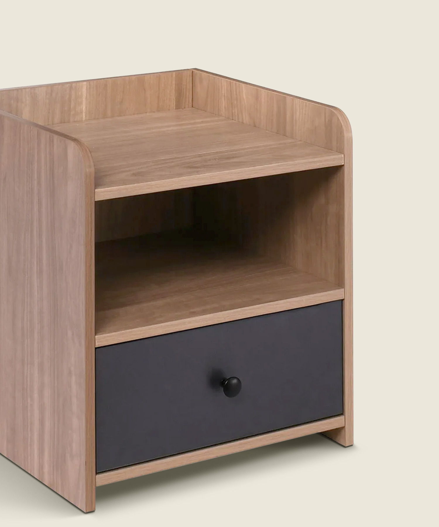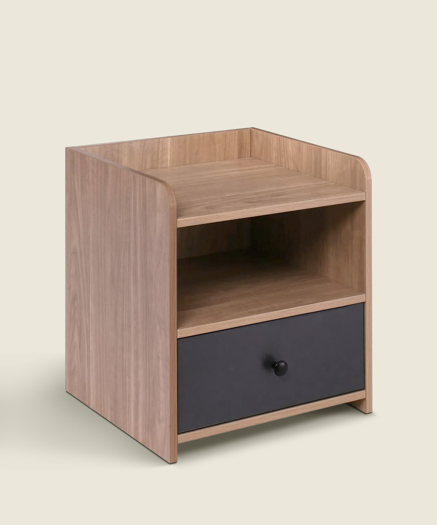 Το κομοδίνο Coty σε απόχρωση sonoma- γκρι προσφέρει ουδέτερη, φυσική αισθητική και πρακτική οργάνωση. Διαθέτει ένα συρτάρι και ανοιχτό ράφι για εύκολη αποθήκευση βιβλίων ή καθημερινών αντικειμένων.