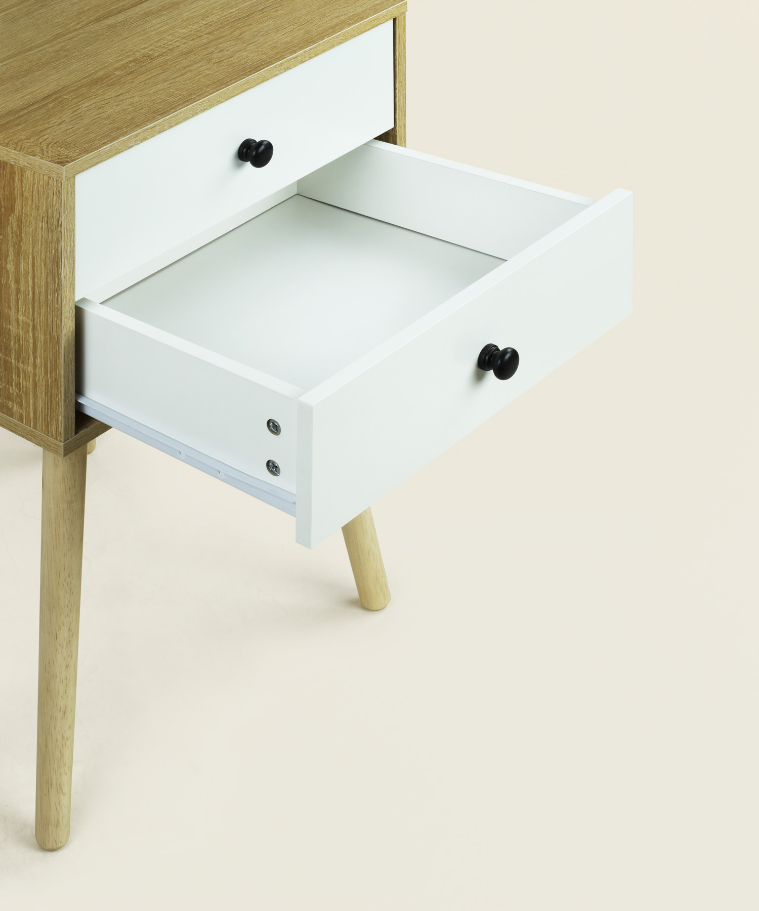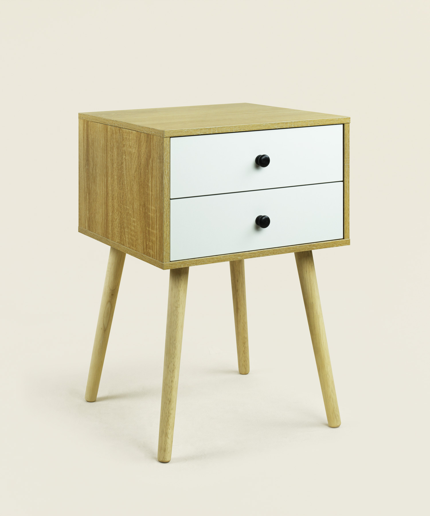 Χρήση: Κατάλληλο για χρήση ως κομοδίνο δίπλα στο κρεβάτι για φωτιστικό, βιβλία, κινητό ή άλλα προσωπικά αντικείμενα. Τα δύο συρτάρια προσφέρουν πρακτικό χώρο αποθήκευσης.