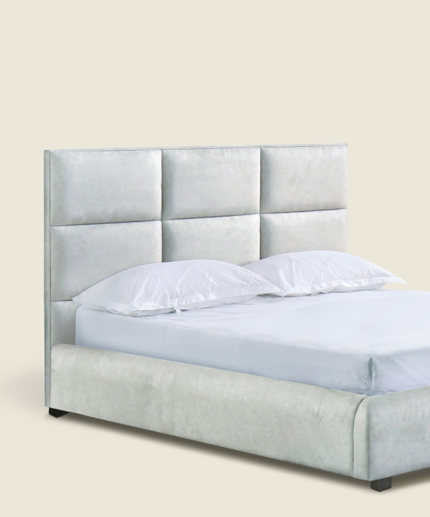 Το υπέρδιπλο υφασμάτινο κρεβάτι Dogo σε ανοιχτό γκρι χρώμα διαθέτει εντυπωσιακό καπιτονέ κεφαλάρι και μοντέρνο σχεδιασμό, προσφέροντας άνεση και διακριτική πολυτέλεια στο υπνοδωμάτιο. Η κατασκευή του το καθιστά ιδανικό για καθημερινή χρήση.