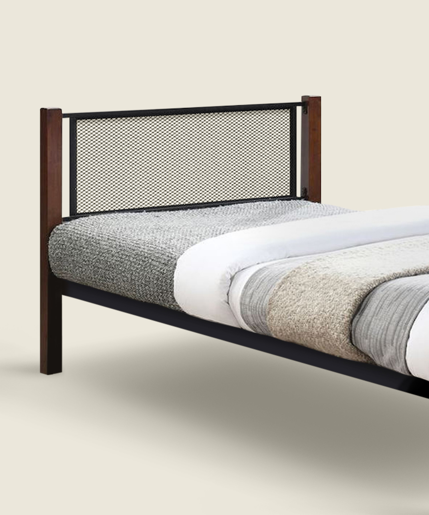Κρεβάτι Mello μεταλλικό ξύλινο μόνο 90×190εκ. σε μαύρο και καρυδί χρώμα
