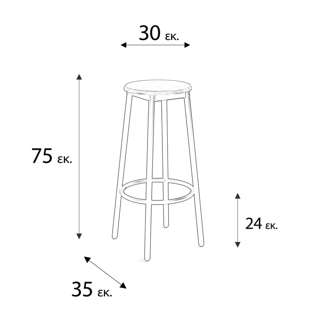 Ειδικές πληροφορίες: Το ύψος καθίσματος των 75 εκ. το καθιστά ιδανικό για πάγκους και μπαρ τυπικού ύψους, ενώ ο μεταλλικός δακτύλιος λειτουργεί και ως υποπόδιο για μεγαλύτερη άνεση.
