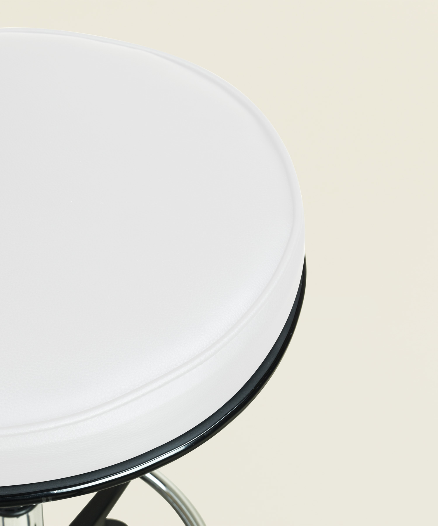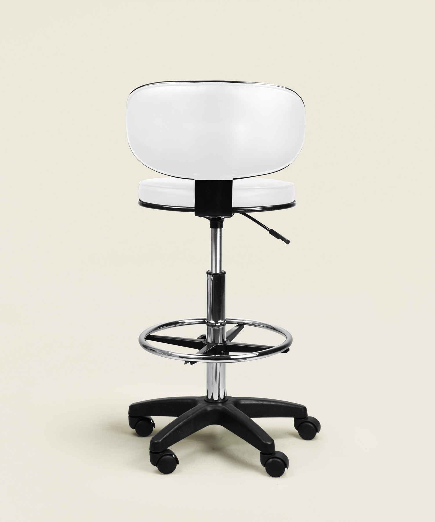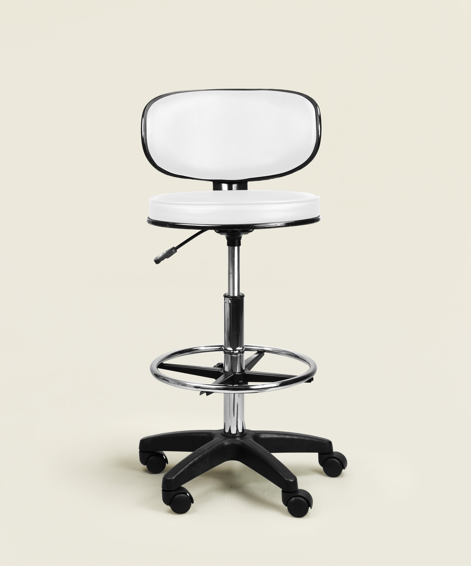 Το σκαμπώ Emily είναι μια πρακτική και κομψή λύση για εργασιακούς χώρους όπως ιατρεία, ταμεία και ρεσεψιόν. Με επένδυση από λευκό τεχνητό δέρμα, μεταλλική βάση και δαχτυλίδι στήριξης για τα πόδια, προσφέρει σταθερότητα και άνεση.
