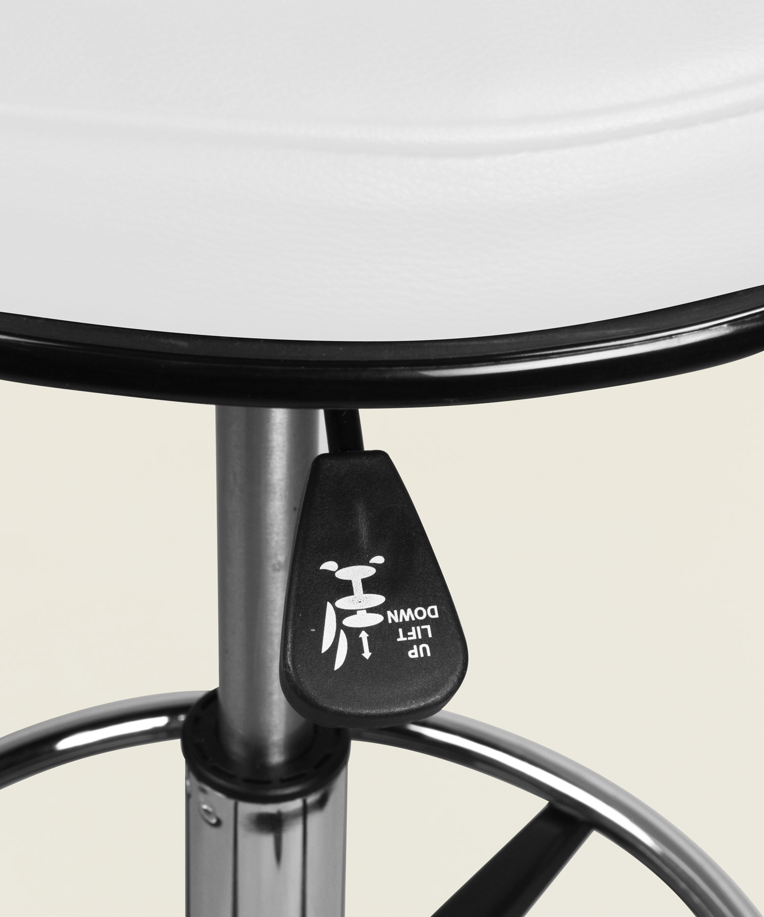 Υλικό κατασκευής: Τεχνητό δέρμα (PU), μεταλλική βάση, τροχοί από ανθεκτικό πλαστικό, υποπόδιο (μεταλλικό δαχτυλίδι)