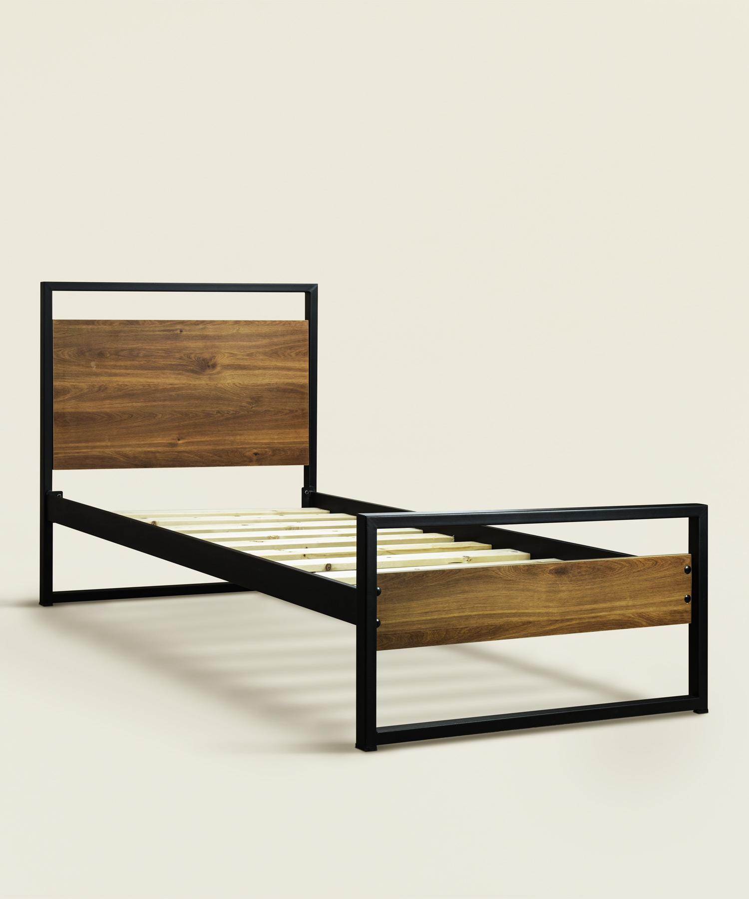 Κρεβάτι Vitorio με μαύρο μεταλλικό σκελετό και ξύλο σε χρώμα καρυδί μονό 90Χ190/200εκ. Ελληνικής κατασκευής.