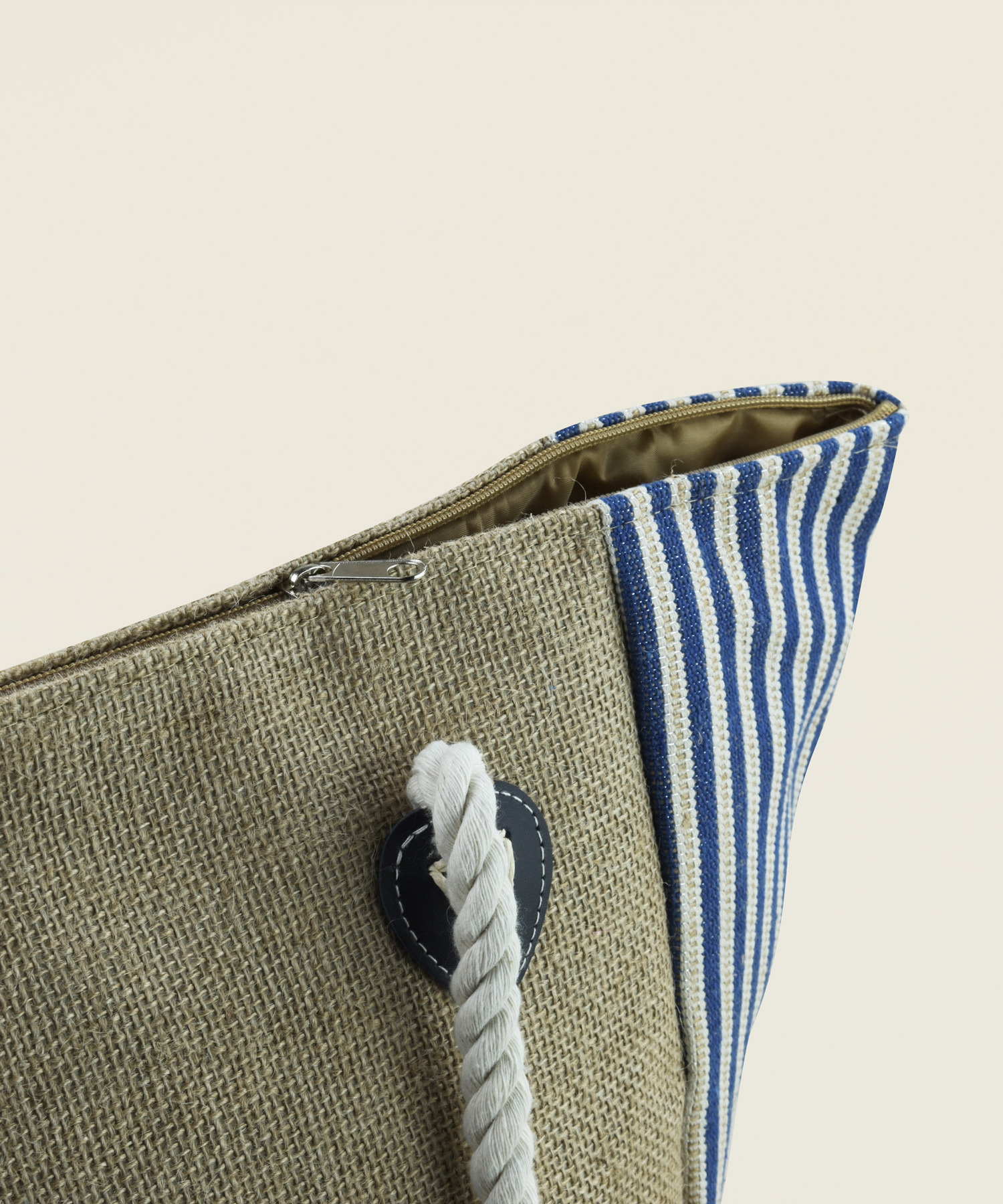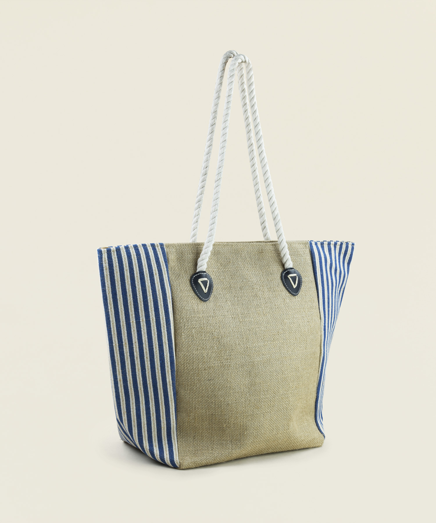 Τσάντα παραλίας από γιούτα και ύφασμα με άσπρες και μπλε ρίγες