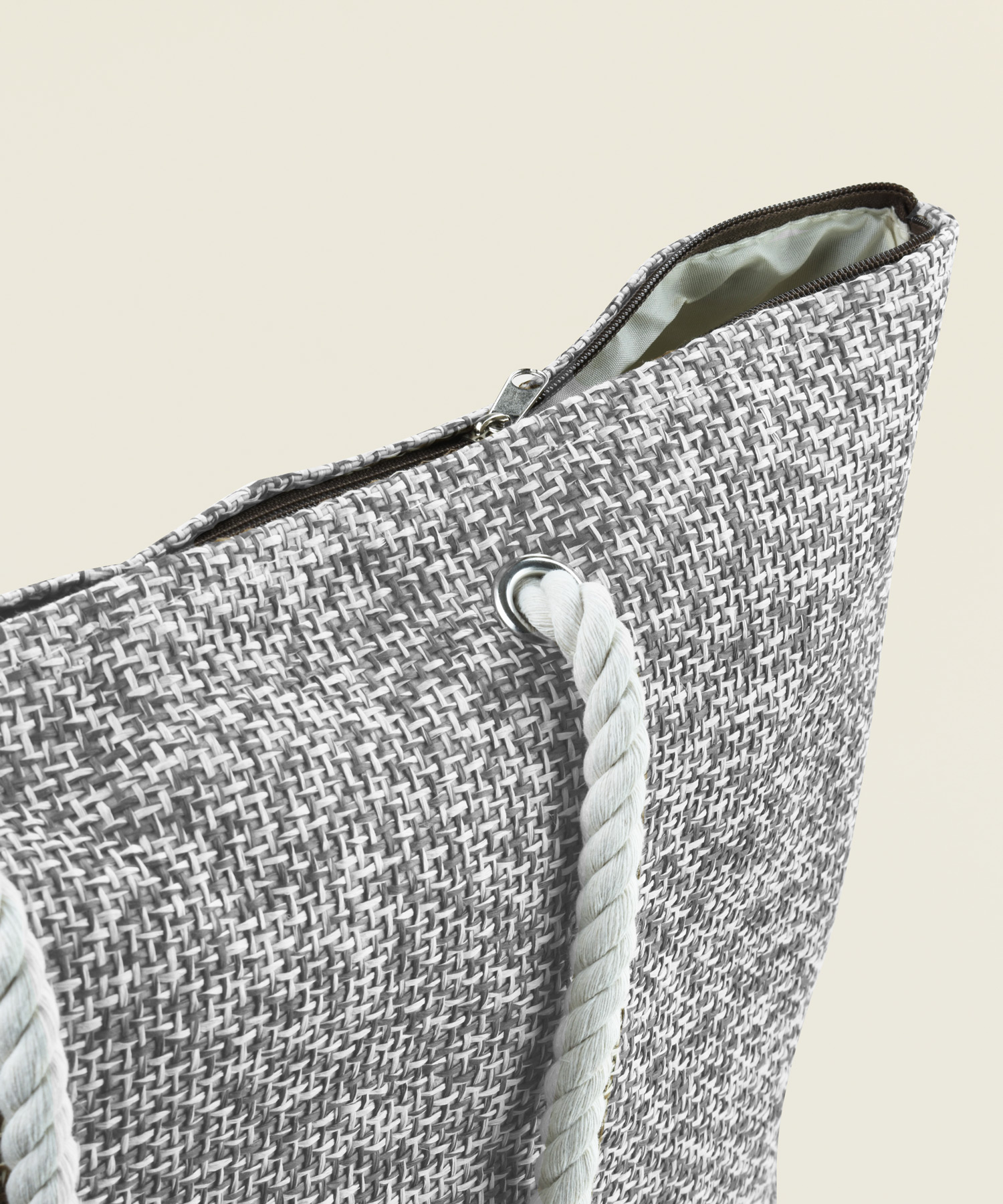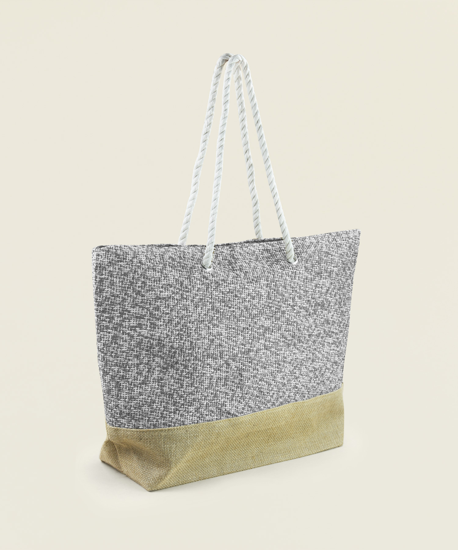 Τσάντα παραλίας ψάθινη σε διχρωμία γκρι-μπεζ