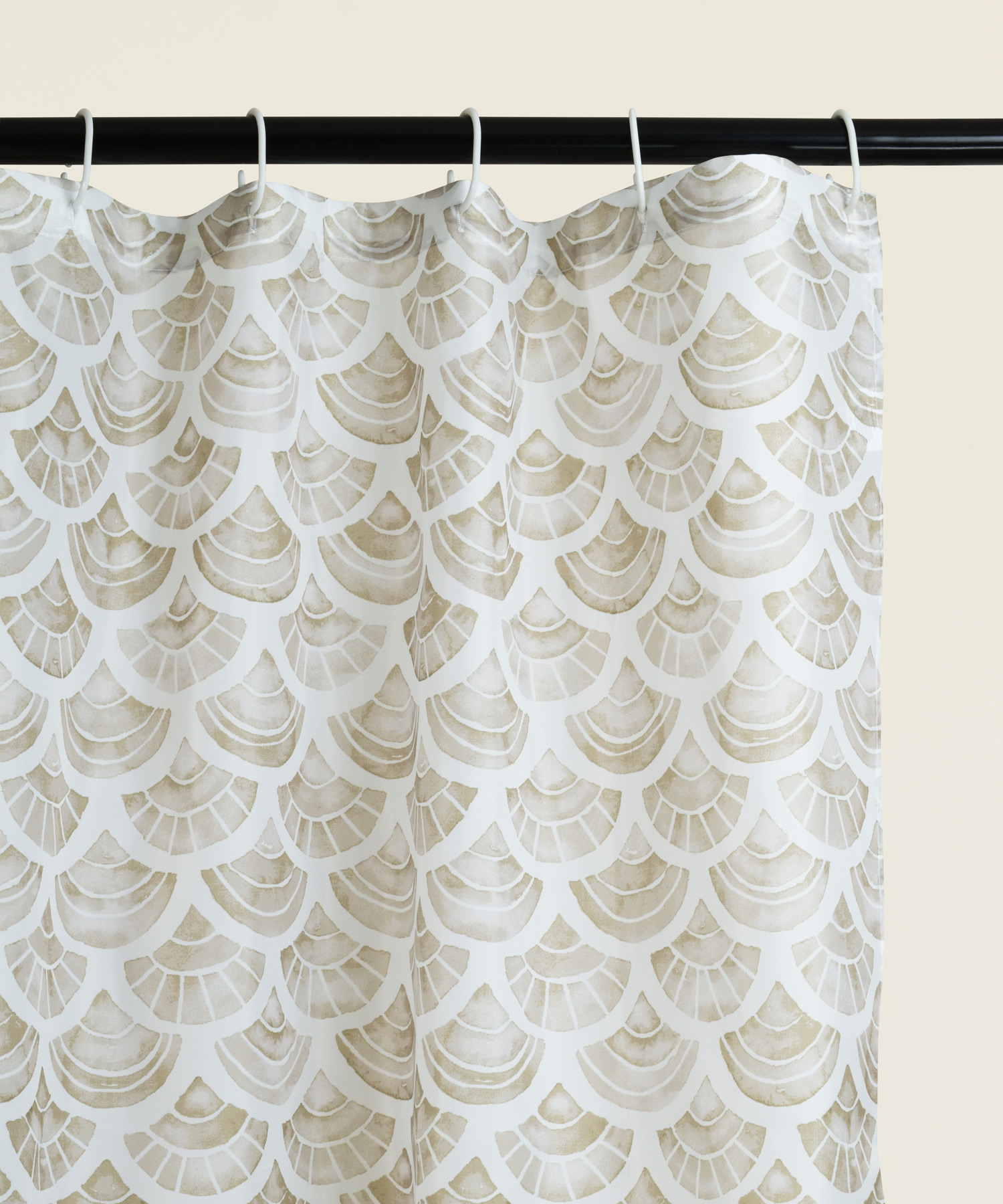 Κουρτίνα μπάνιου υφασμάτινη με σχέδιο κοχύλια μπεζ