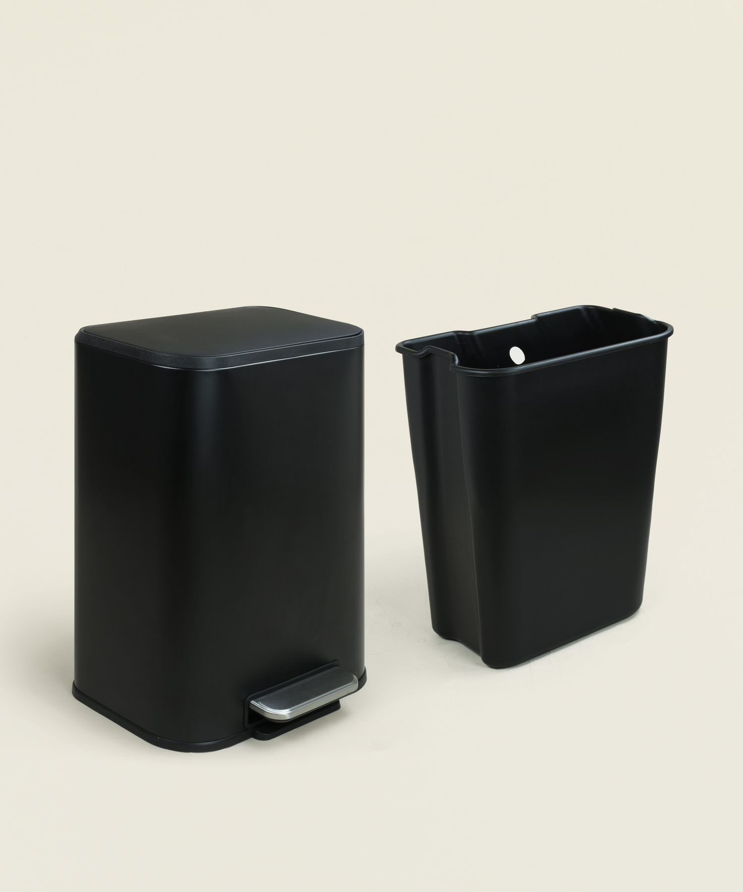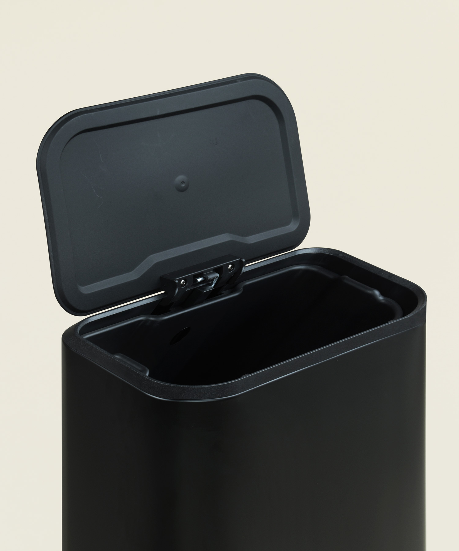 Κάδος απορριμμάτων 12 λίτρων από ανοξείδωτο ατσάλι σε μαύρη ματ απόχρωση, με σύστημα soft close για αθόρυβη και άνετη χρήση.