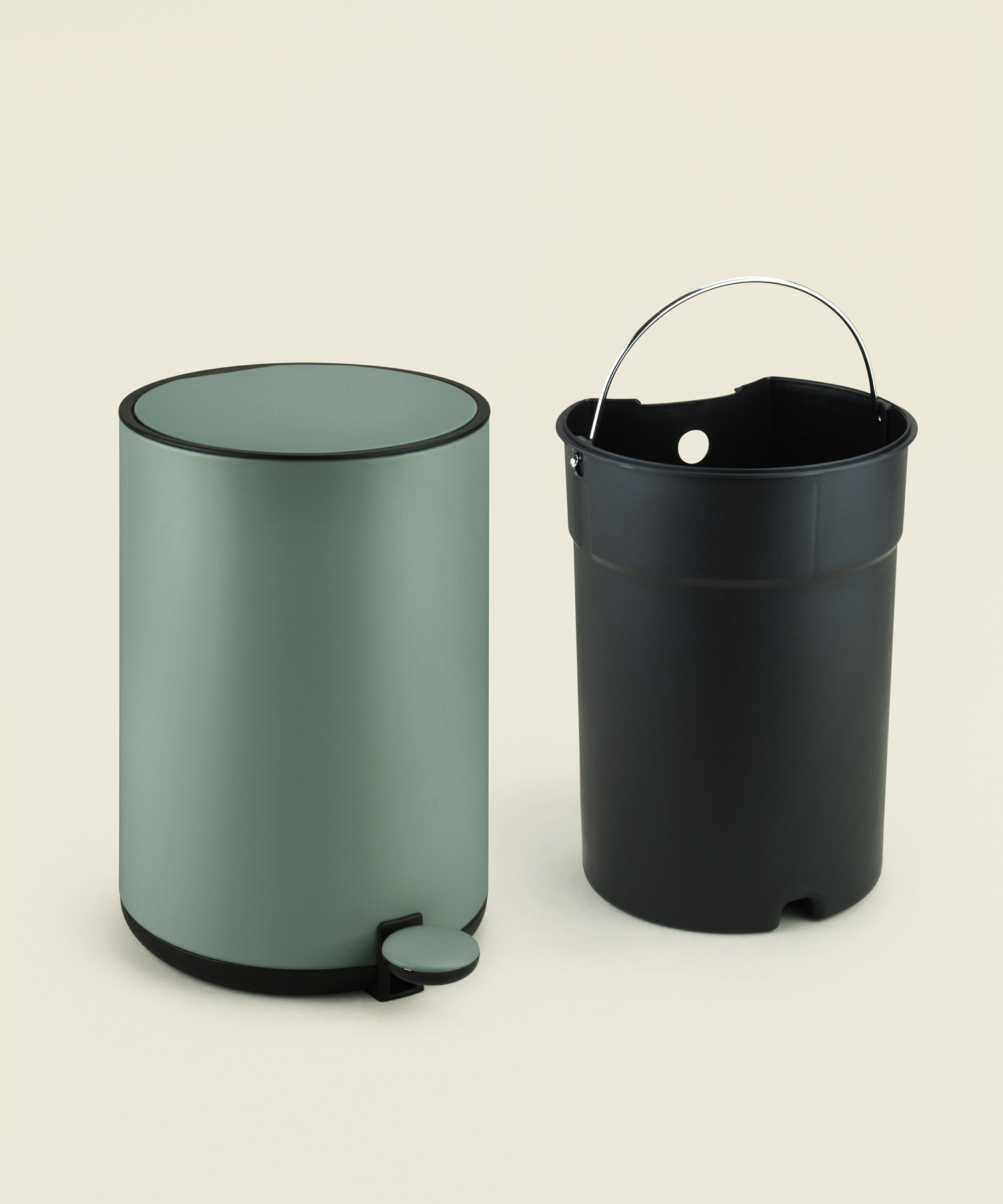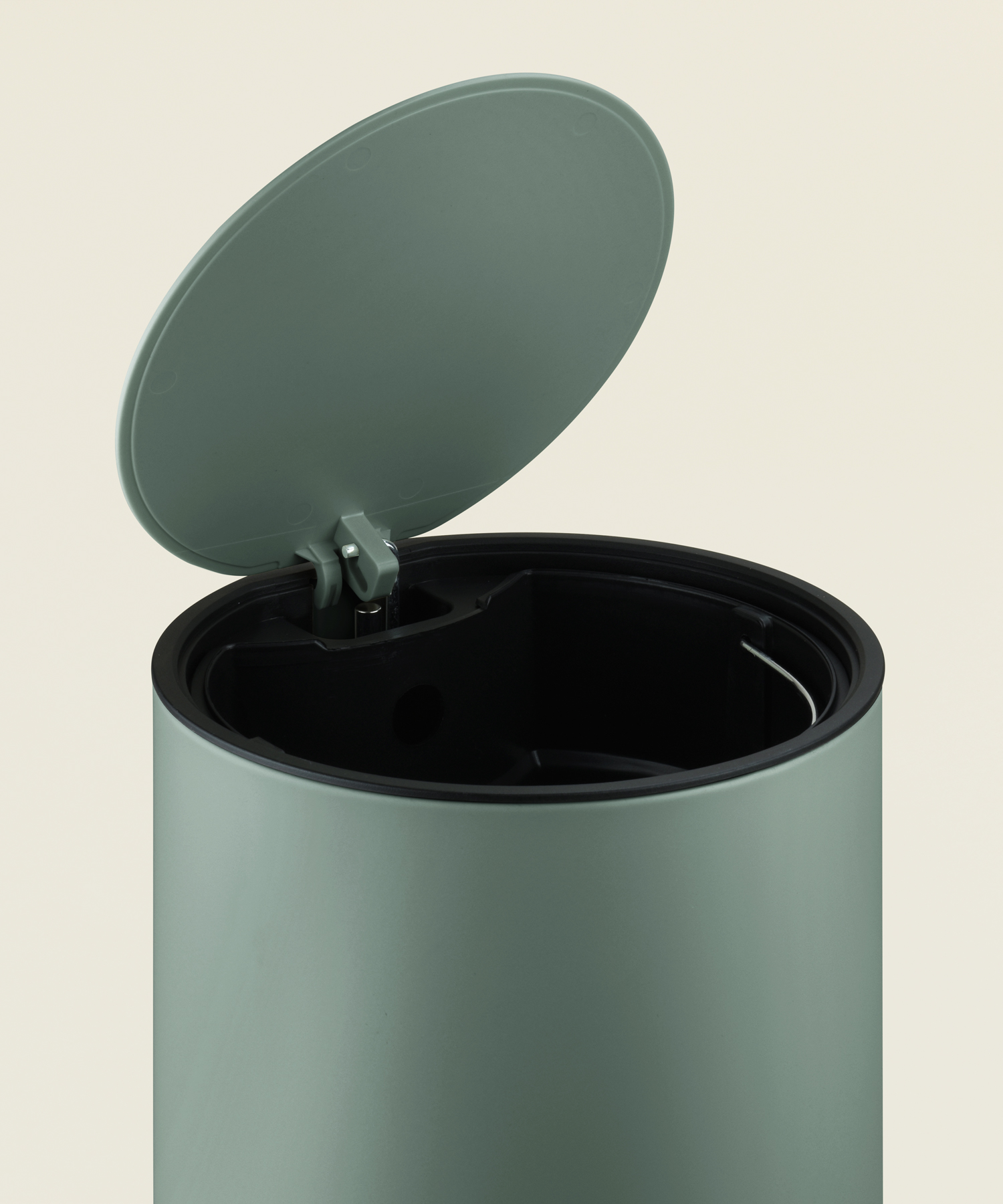 Μεταλλικός στρογγυλός κάδος απορριμμάτων 5L σε λαδί ματ χρώμα, με καπάκι soft-close. Διαθέτει αφαιρούμενο εσωτερικό κάδο με χειρολαβή για άνετο άδειασμα και καθάρισμα, ιδανικός για μπάνιο ή μικρούς χώρους.