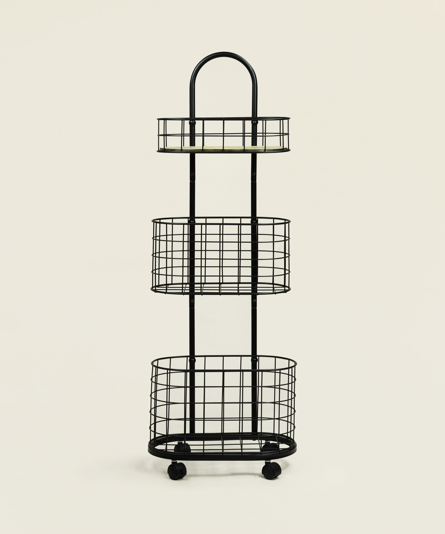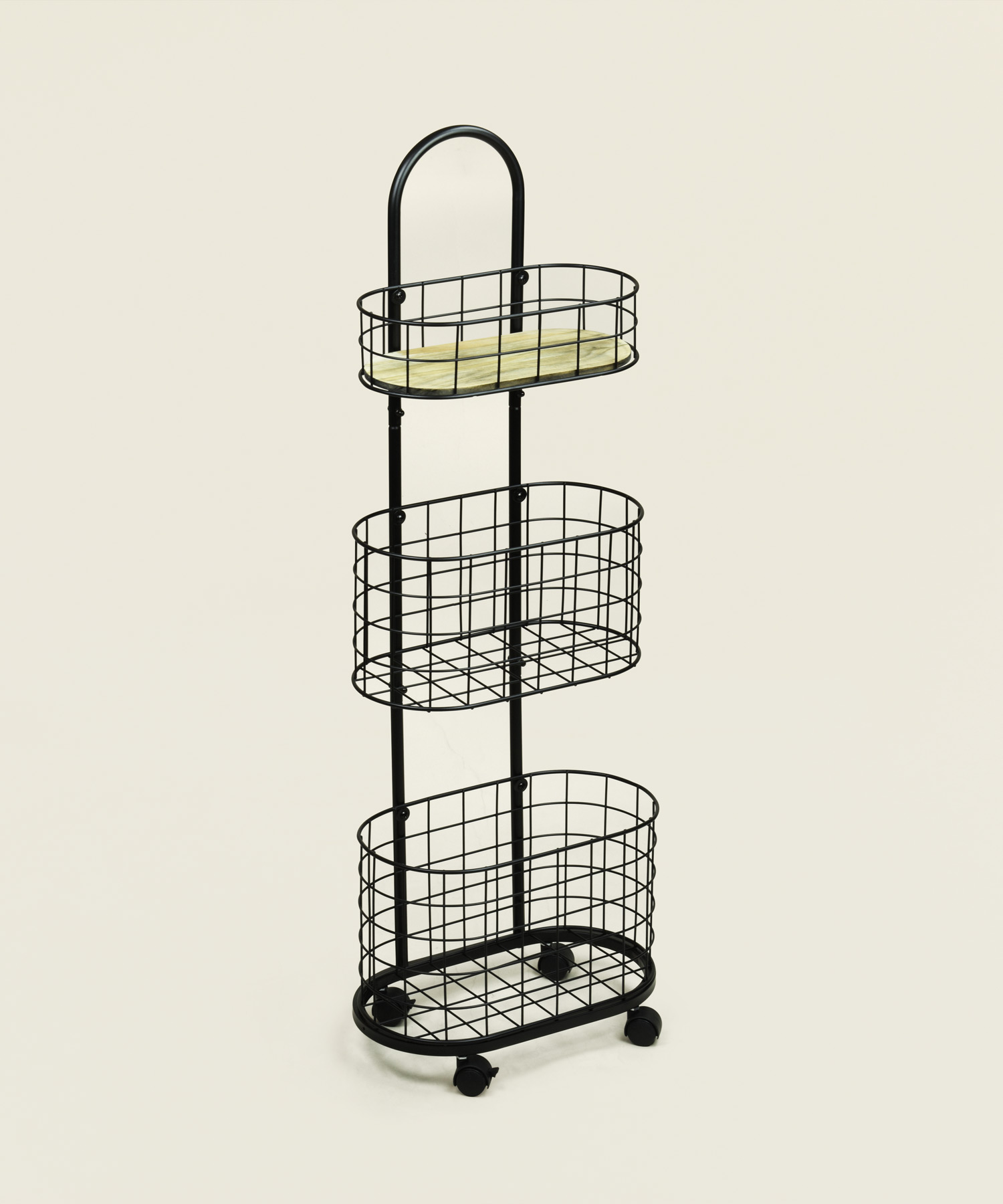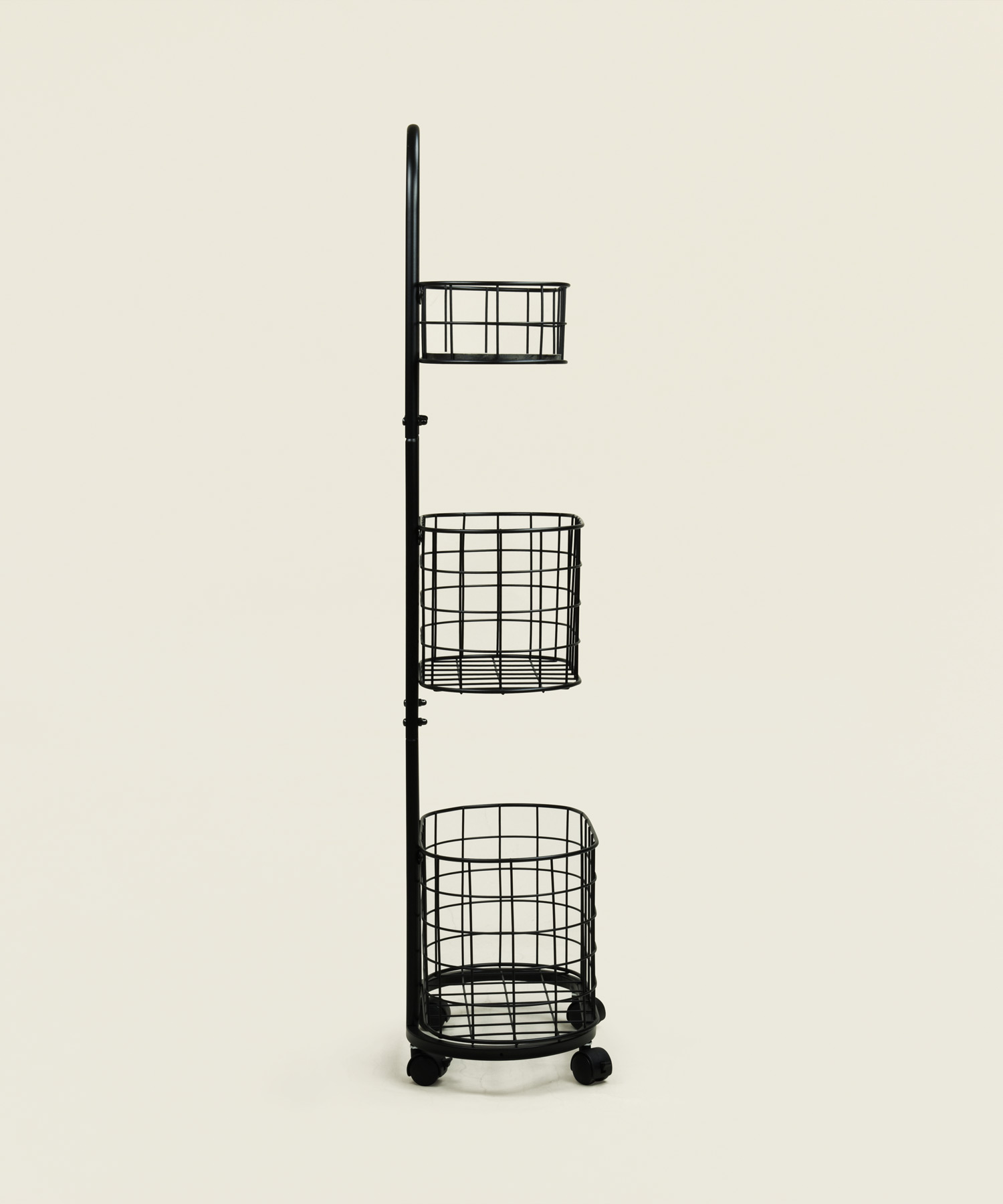 Το μεταλλικό τρόλεϊ αποθήκευσης με τρία καλάθια προσφέρει πρακτική και ευέλικτη λύση οργάνωσης για κουζίνα, μπάνιο ή βοηθητικούς χώρους συνδυάζοντας λειτουργικότητα και minimal αισθητική.