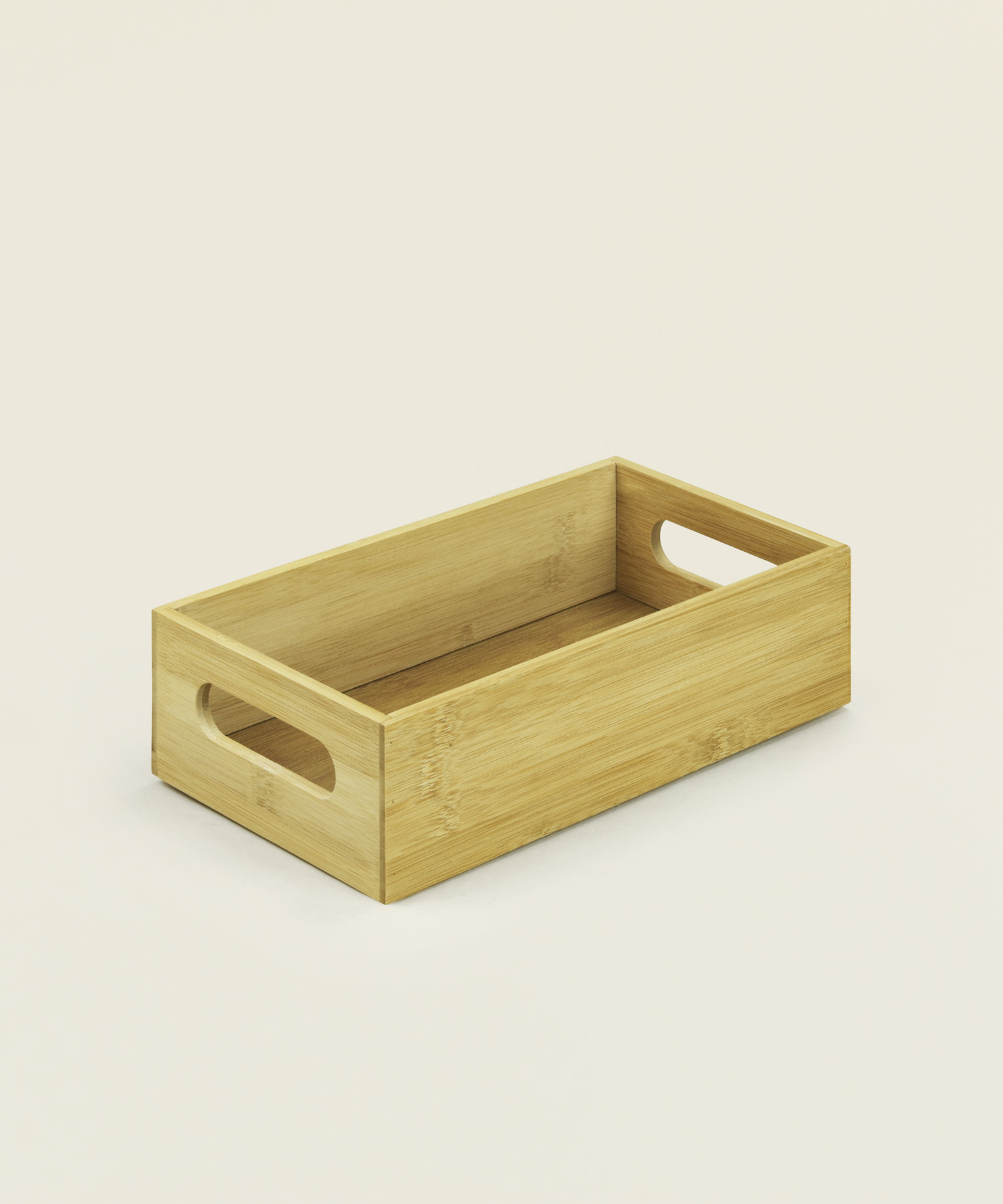 Κουτί αποθήκευσης από φυσικό ξύλο μπαμπού με πρακτικές λαβές για εύκολη μεταφορά. Ιδανικό για την οργάνωση της κουζίνας, του γραφείου ή του μπάνιου.
