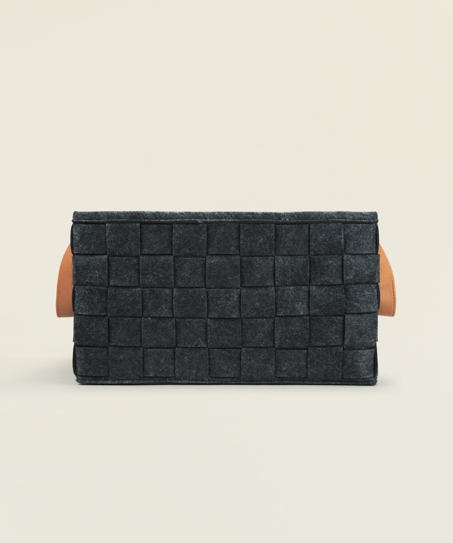 Καλάθι αποθήκευσης υφασμάτινο πλεκτό με δερμάτινες λαβές σε μαύρο χρώμα 26Χ38Χ22εκ.