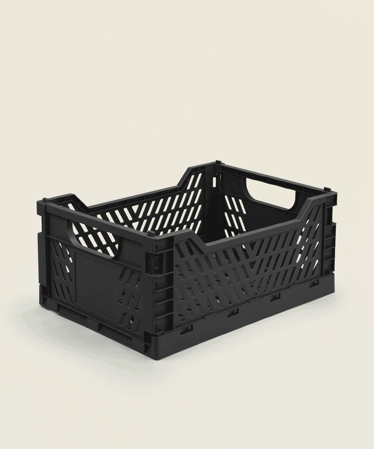 Αναδιπλούμενο πλαστικό καλάθι 12lt σε μαύρο χρώμα, ιδανικό για αποθήκευση και οργάνωση με πρακτικό σχεδιασμό.
