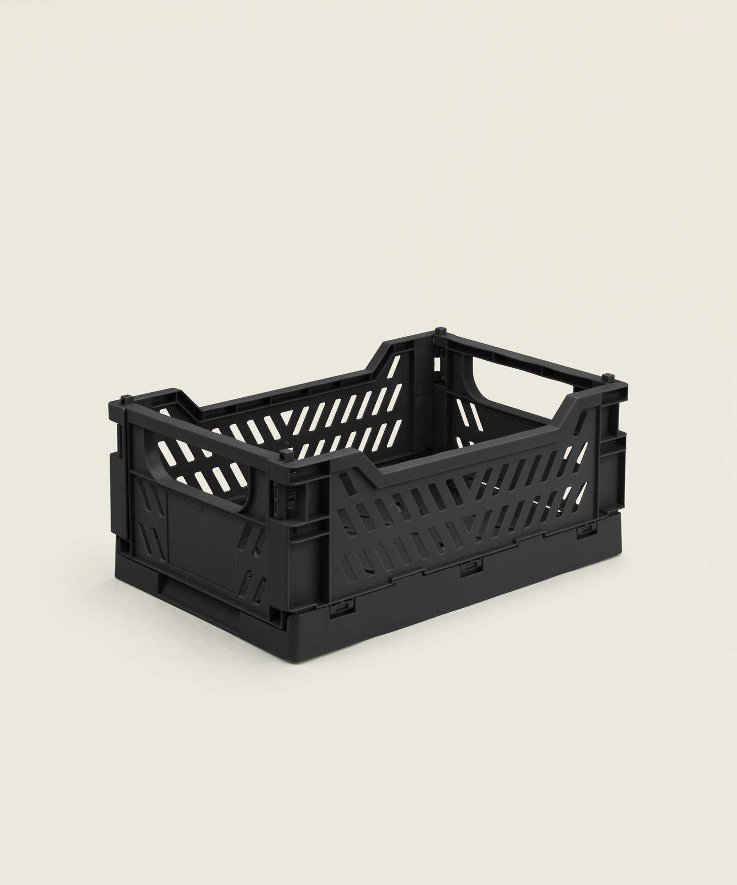 Αναδιπλούμενο πλαστικό καλάθι 4,5lt σε μαύρο χρώμα, ιδανικό για αποθήκευση μικροαντικειμένων και εξοικονόμηση χώρου.