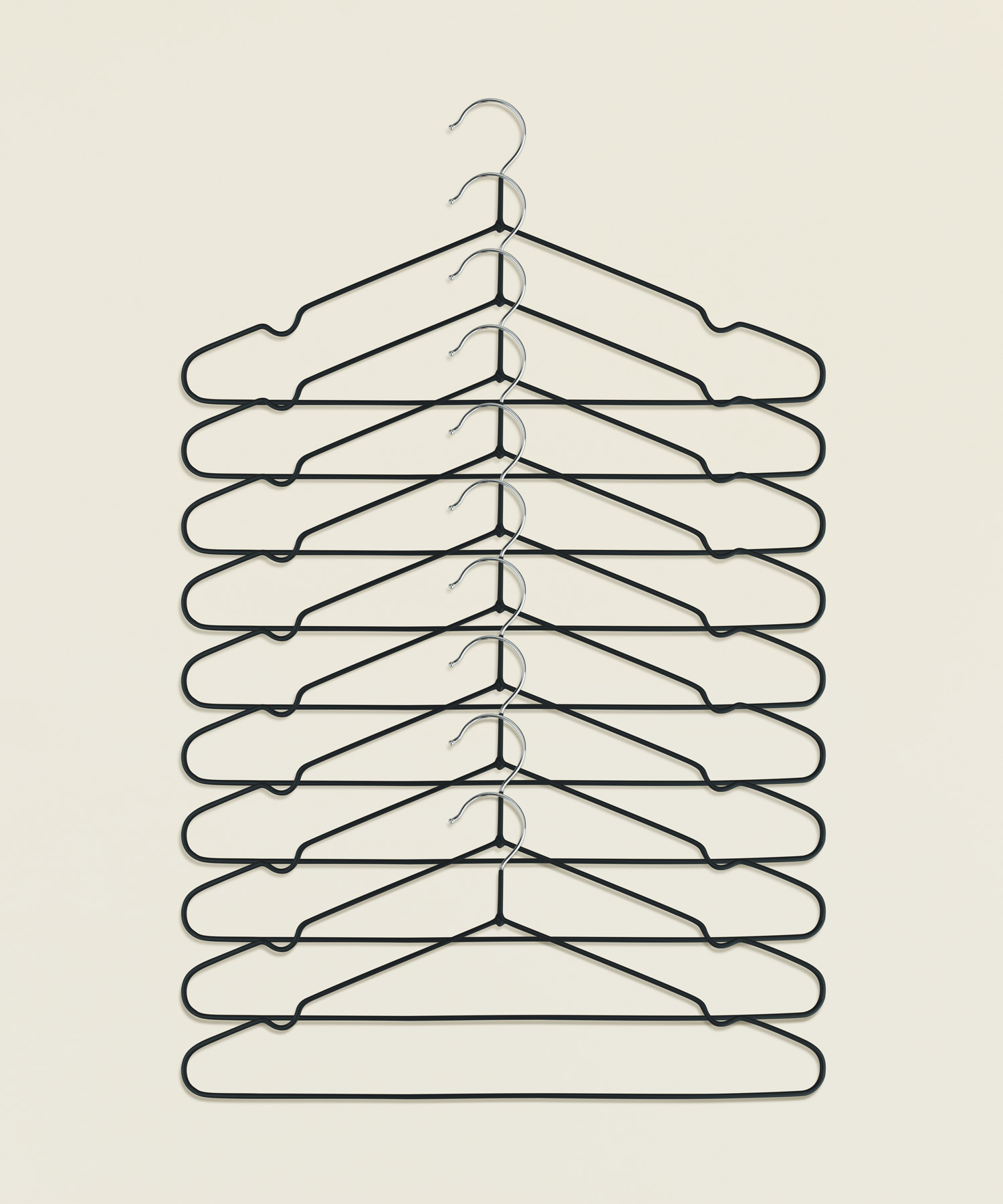 Σετ 10 μεταλλικές κρεμάστρες με επένδυση PVC σε μαύρο χρώμα, ιδανικές για να κρεμάτε τα ρούχα σας χωρίς να γλιστρούν και να κρατάτε τη ντουλάπα σας τακτοποιημένη.