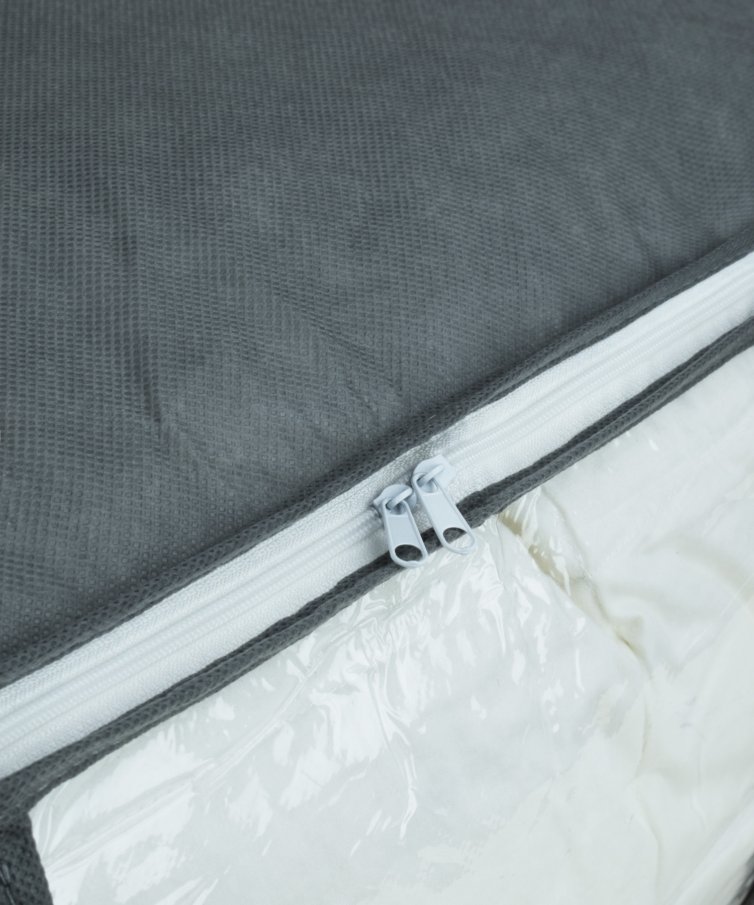 Υφασμάτινη θήκη αποθήκευσης με φερμουάρ και παράθυρο, ιδανική για οργάνωση ρούχων και μικρότερων αντικειμένων.