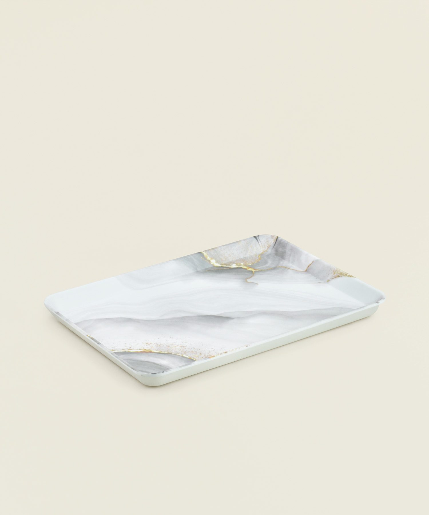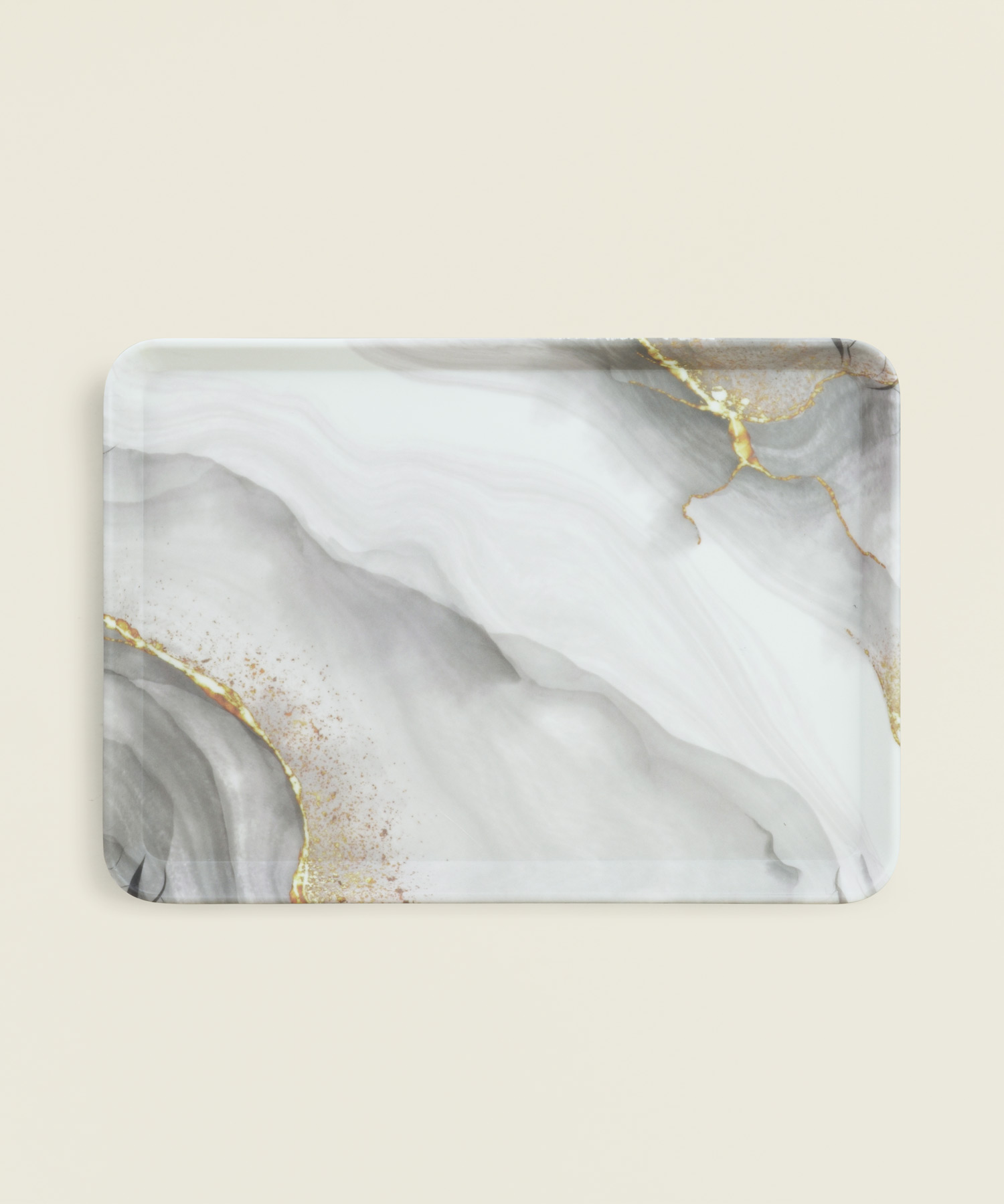Δίσκος σερβιρίσματος με εφέ μάρμαρο, ιδανικός για κομψή παρουσίαση φαγητού, ροφημάτων ή διακόσμηση τραπεζιού.