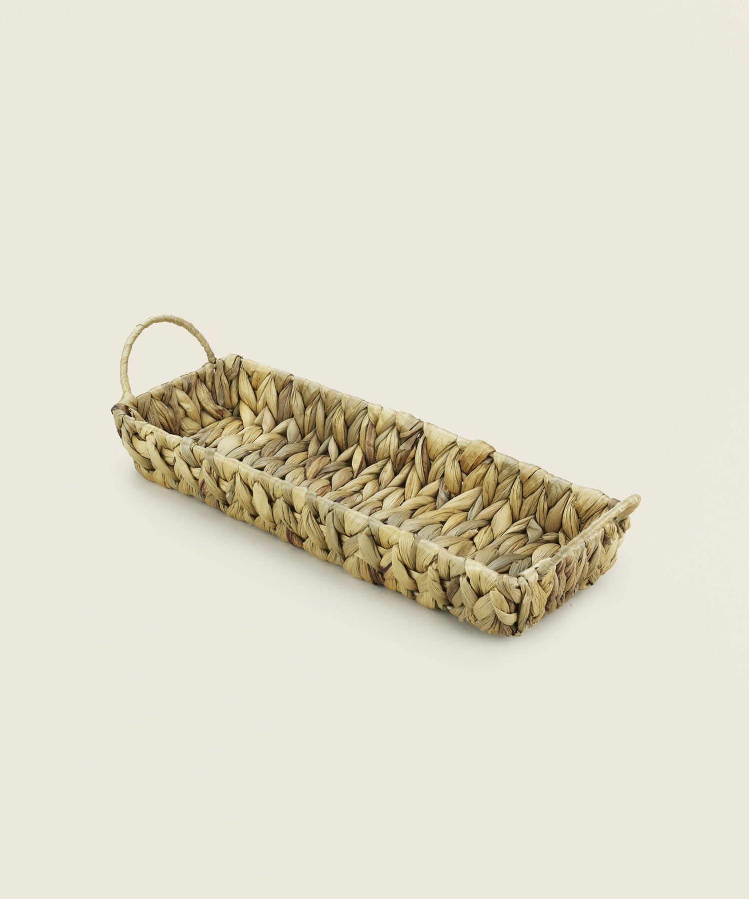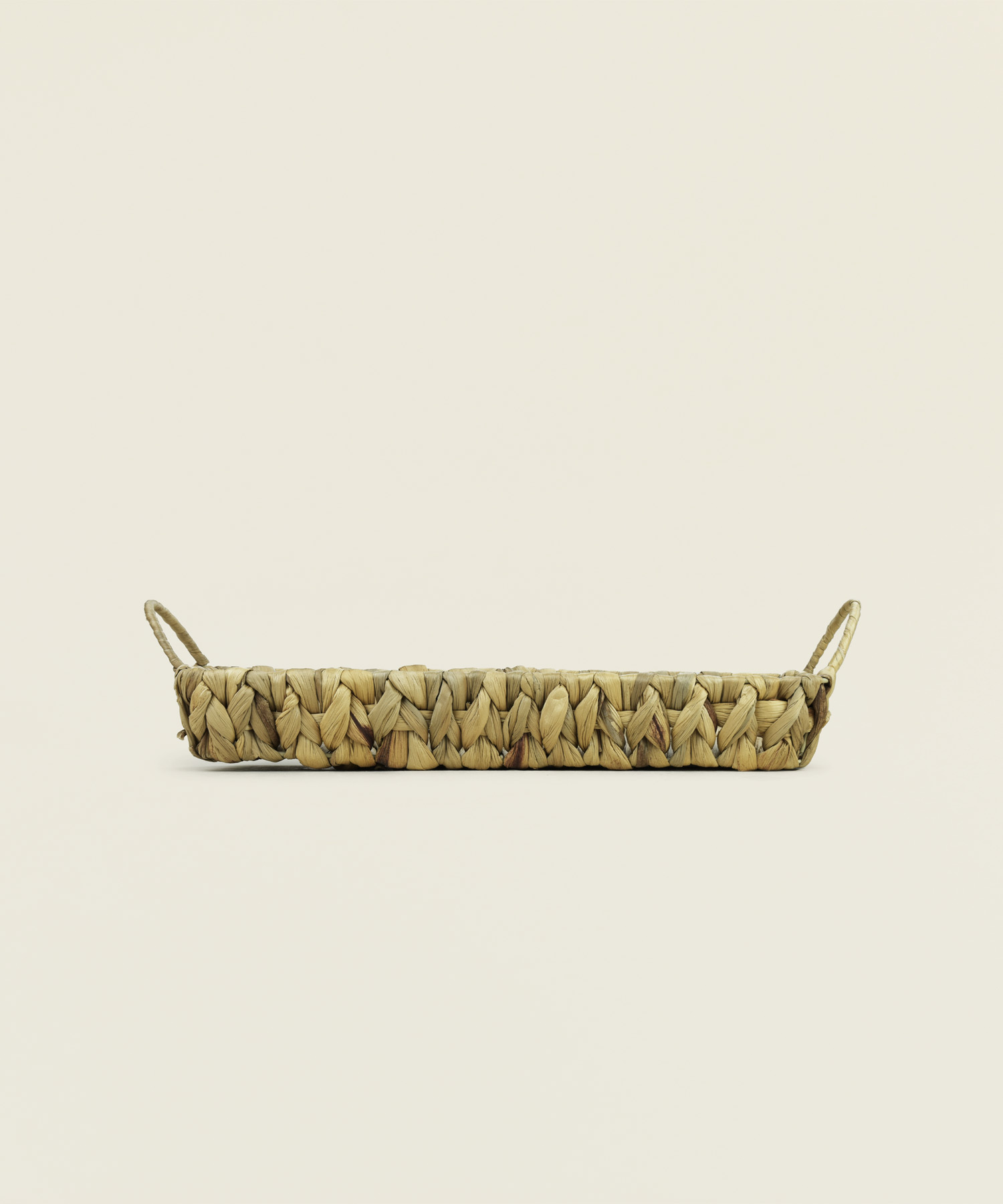 Ορθογώνιο ψάθινο καλάθι, ιδανικό για σερβίρισμα ψωμιού ή αρτοσκευασμάτων στο τραπέζι, με πρακτικές χειρολαβές για εύκολη μεταφορά.