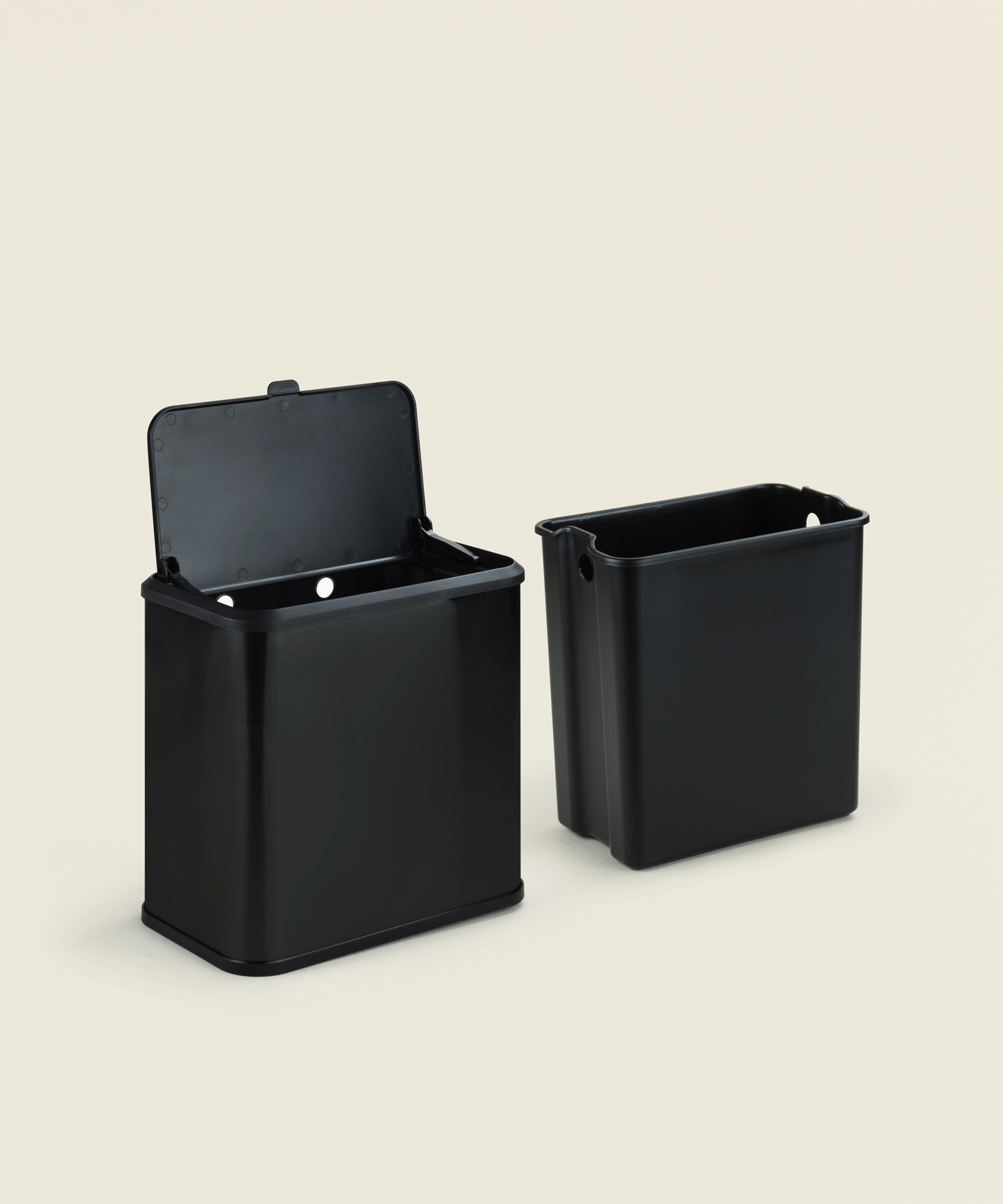 Κάδος απορριμμάτων μικρός για πάγκο ή ντουλάπι κουζίνας 5Lt μεταλλικός σε μαύρο χρώμα, διαστάσεων 25×15,1×24,7εκ. Διαθέτει καπάκι που ανοίγει και από τις δύο πλευρές.