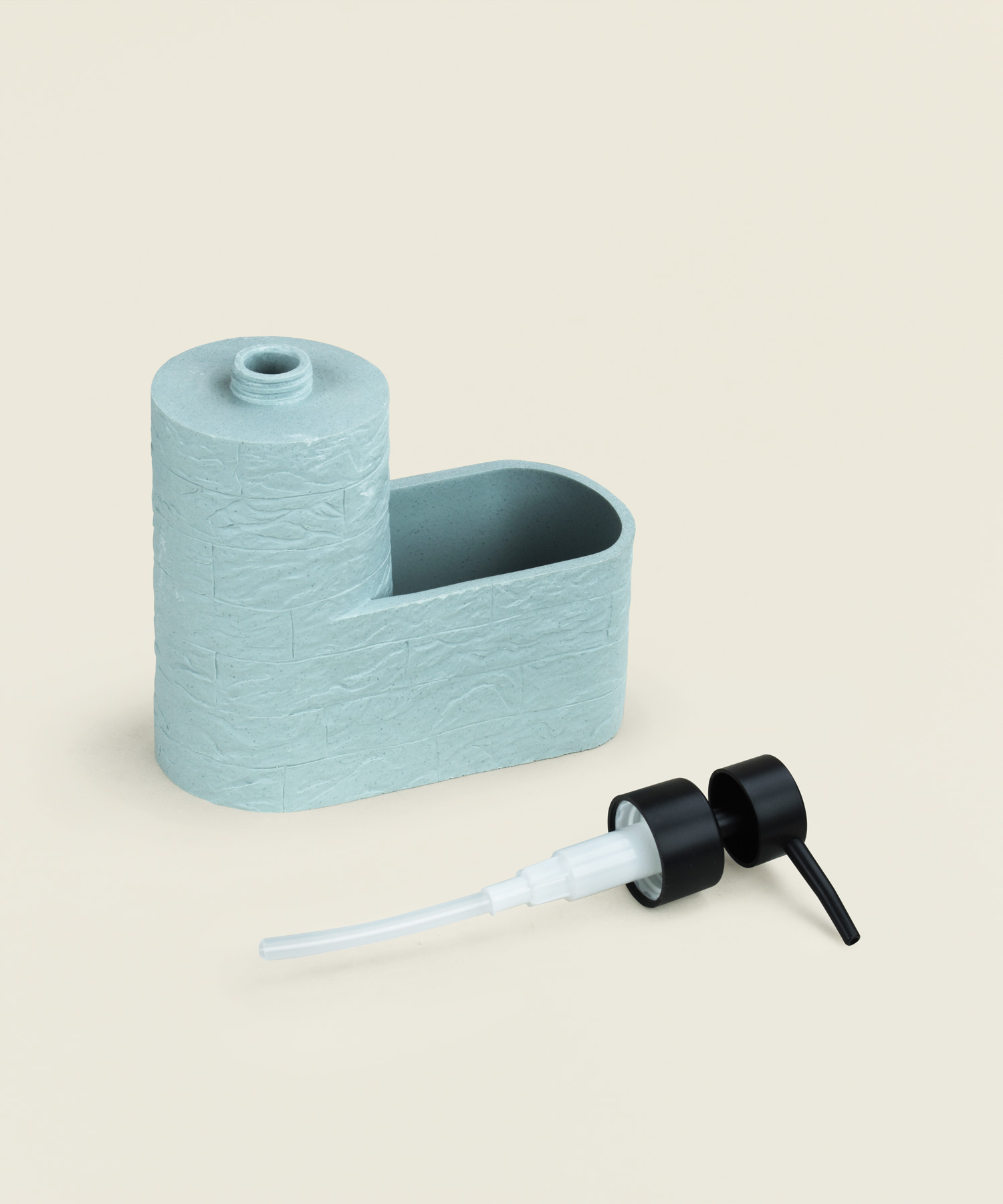 Θήκη κεραμική για υγρό σαπούνι κουζίνας σε χρώμα aqua με μαύρο στόμιο