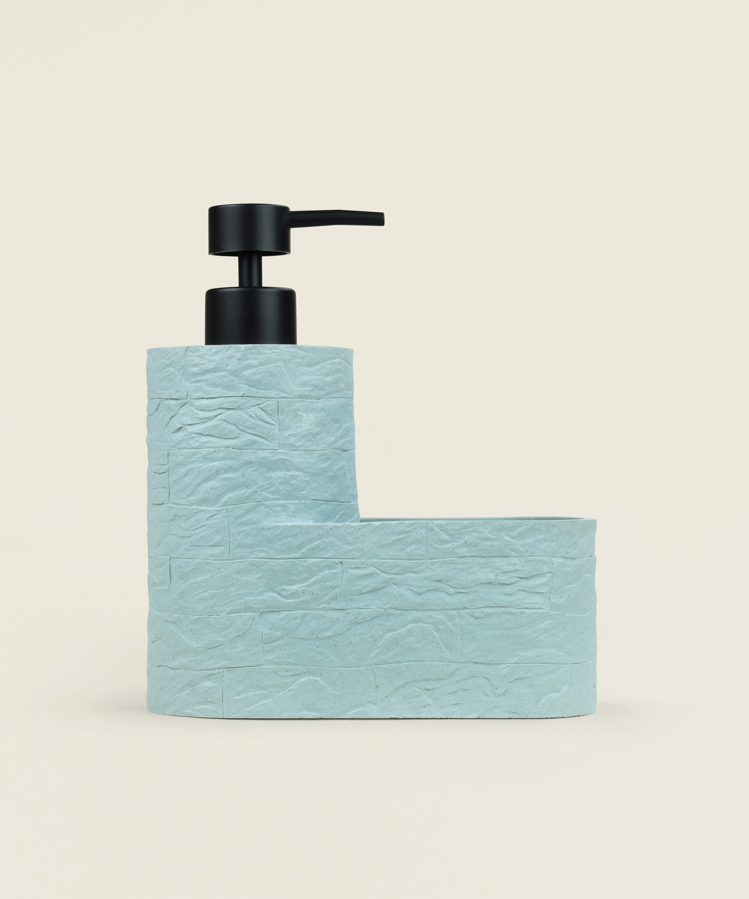 Θήκη κεραμική για υγρό σαπούνι κουζίνας, σε χρώμα aqua με μαύρο στόμιο και θέση για σφουγγάρι