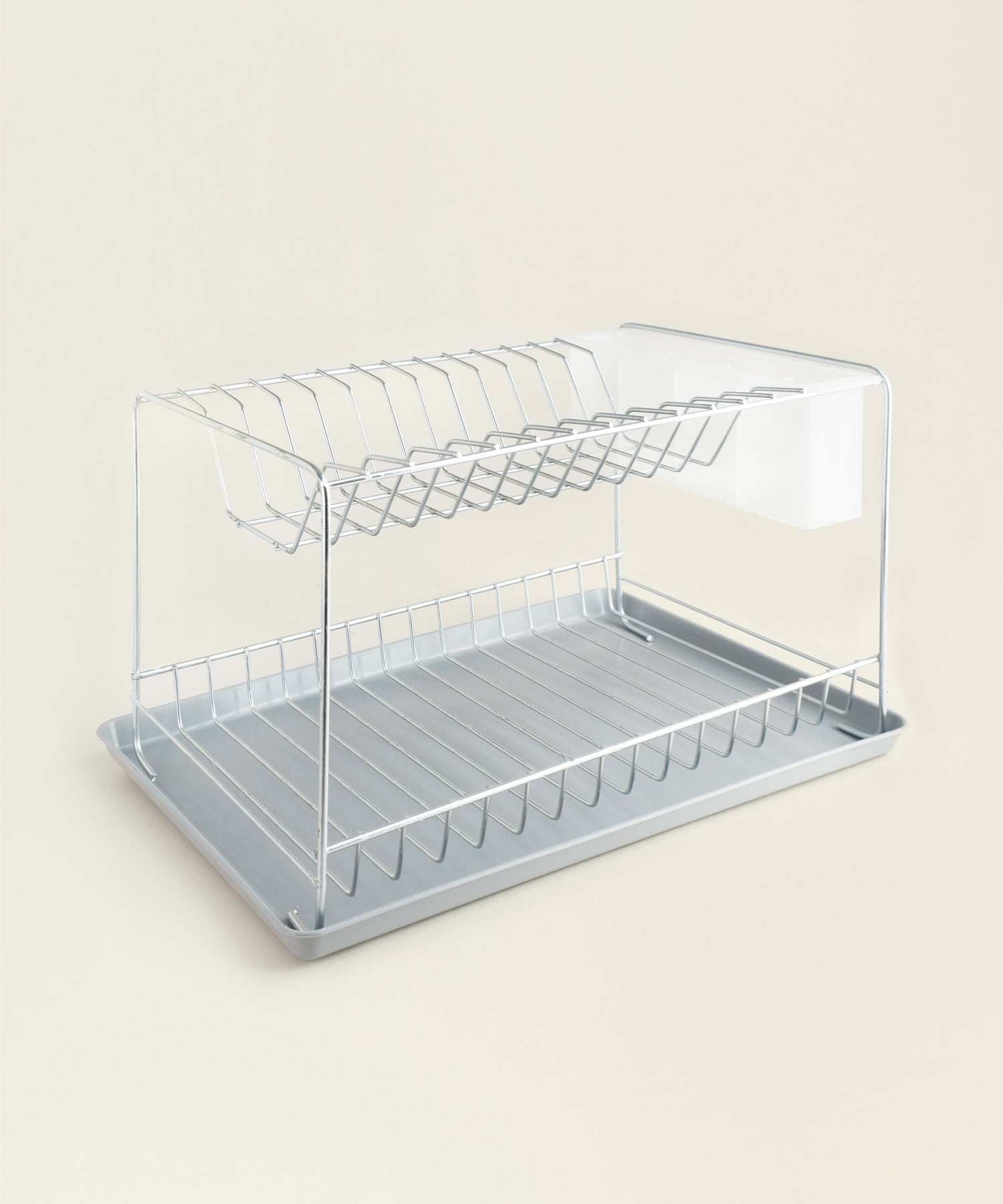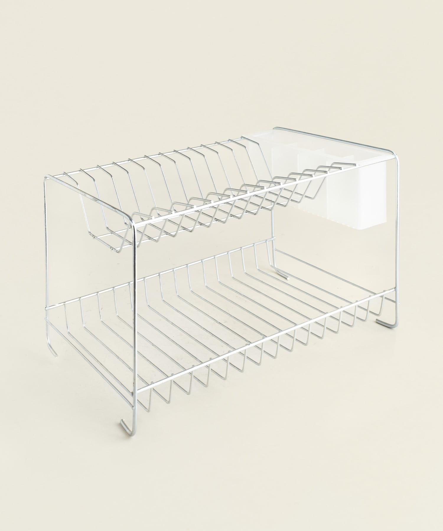 Πιατοθήκη μεταλλική δύο επιπέδων με κουταλοθήκη διαστάσεων 40,5Χ23Χ24εκ. σε χρώμα νίκελ.