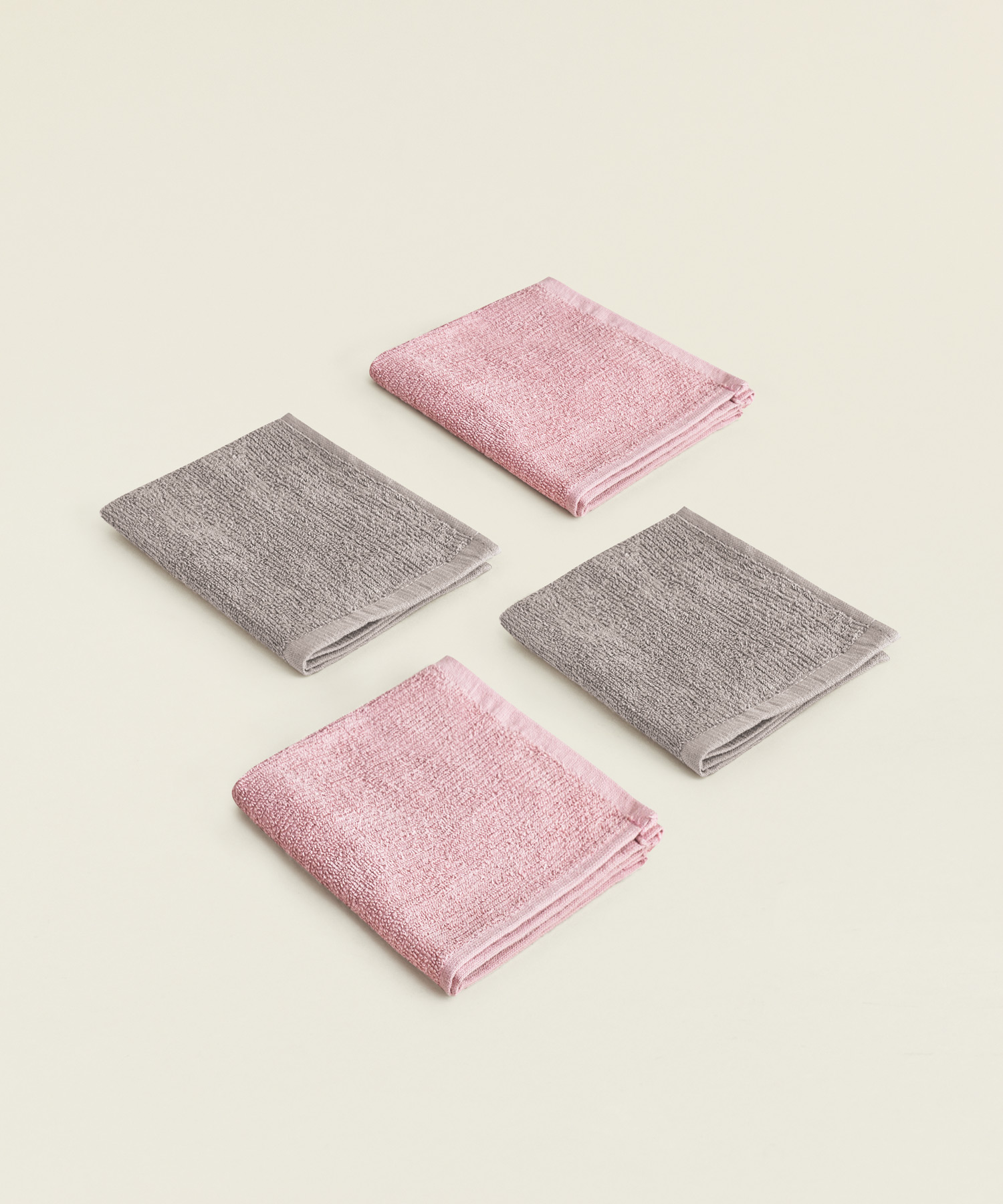 Πετσέτα κουζίνας βαμβακερή σετ 4 τμχ. μεγέθους 30Χ30εκ. σε χρώμα γκρι-σκούρο ροζ.