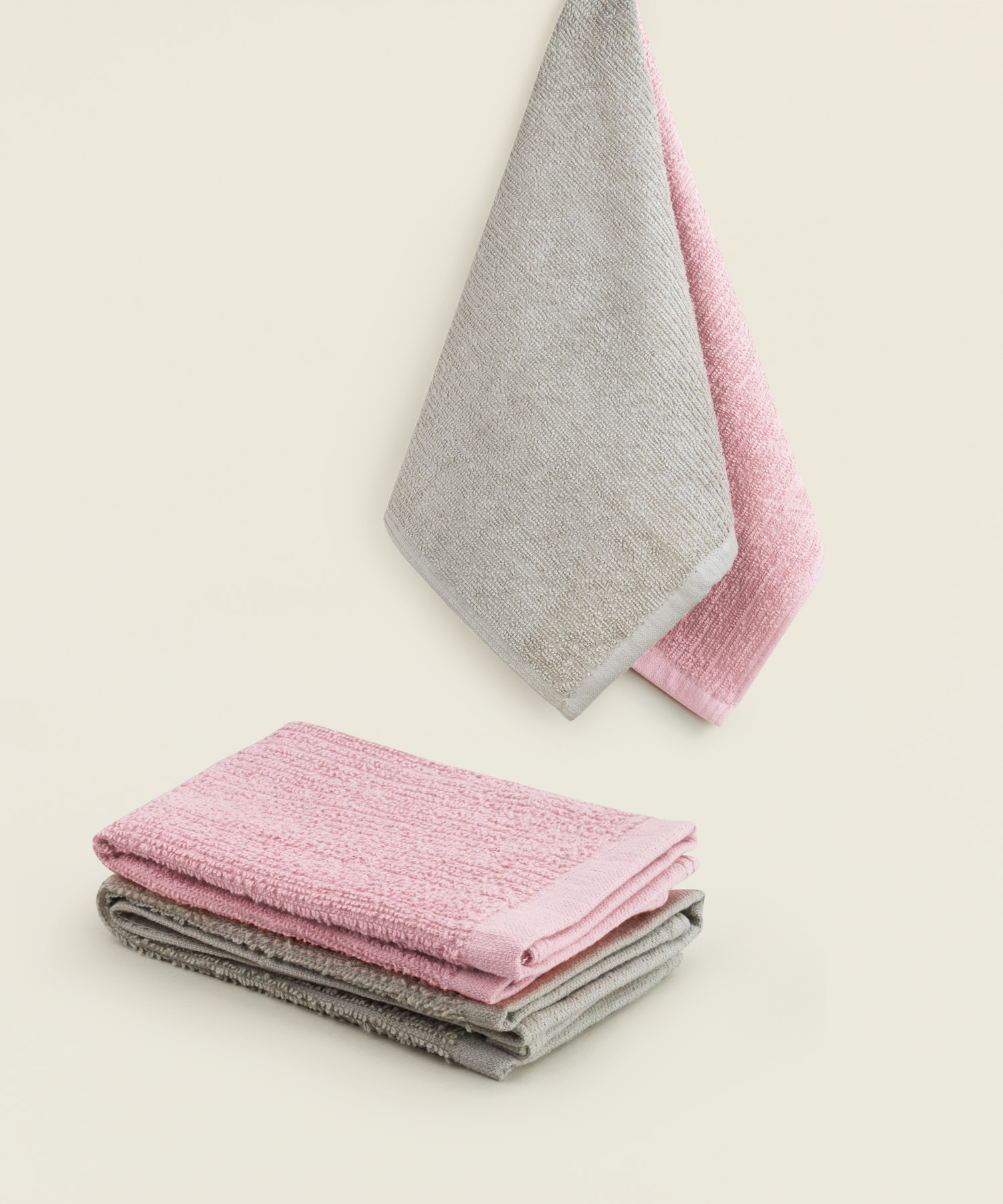 Πετσέτα κουζίνας βαμβακερή σετ 4 τμχ. σε χρώμα γκρι-σκούρο ροζ