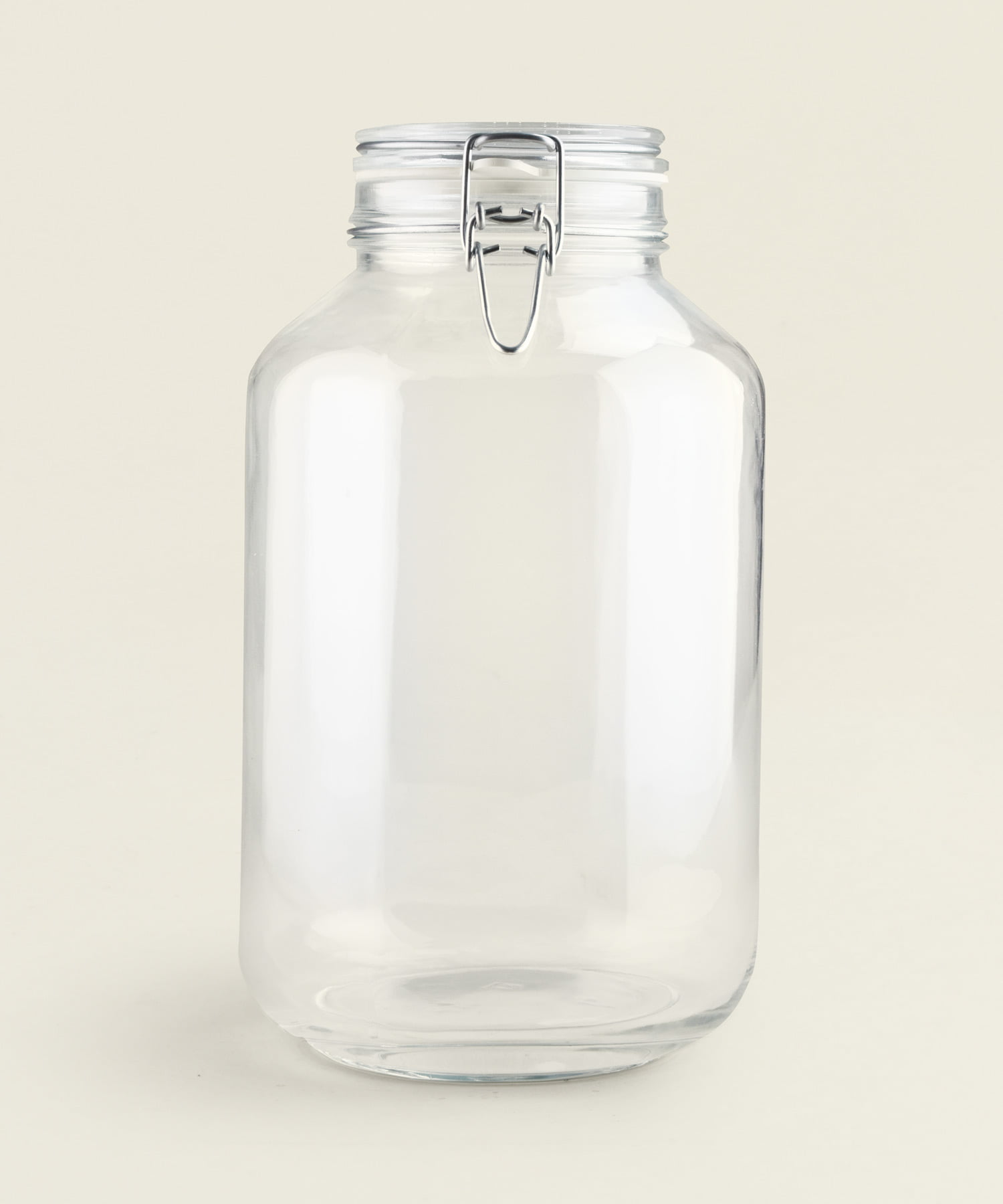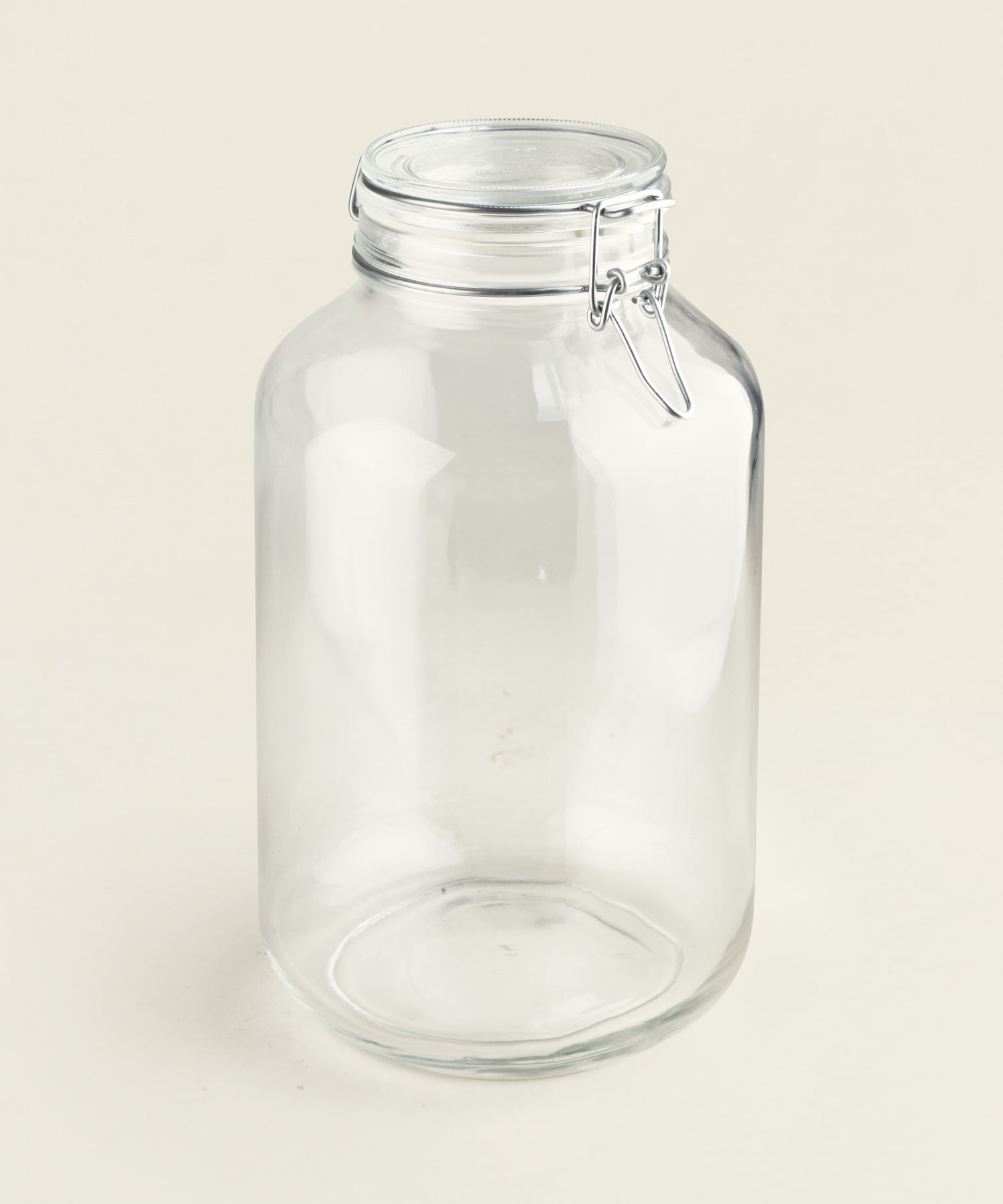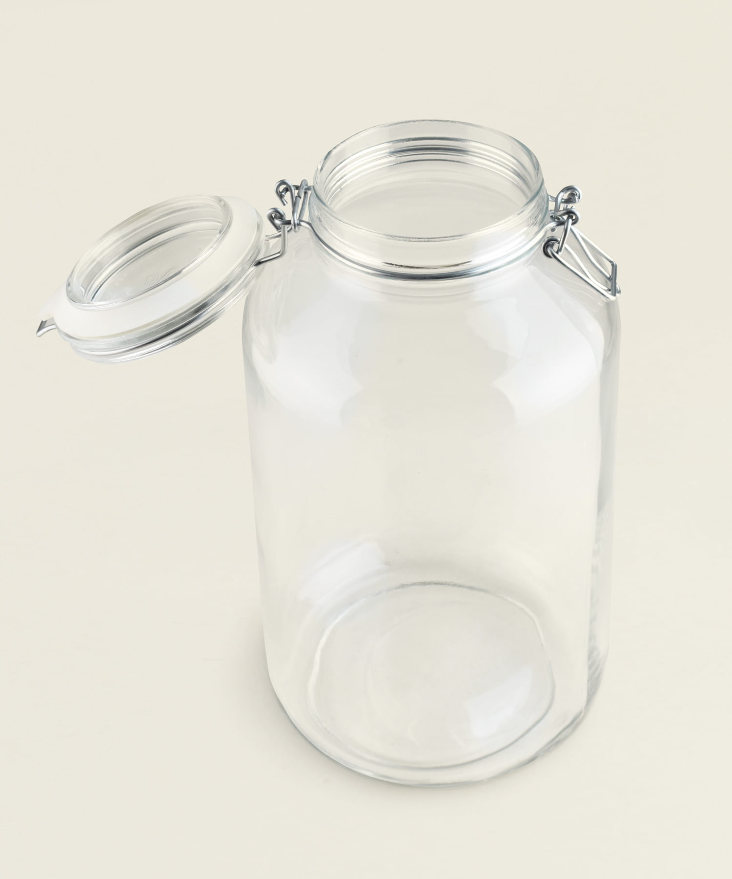 Μεγάλο γυάλινο βάζο 5Lt με μηχανισμό κλεισίματος, ιδανικό για αποθήκευση τροφίμων σε μεγάλες ποσότητες.
