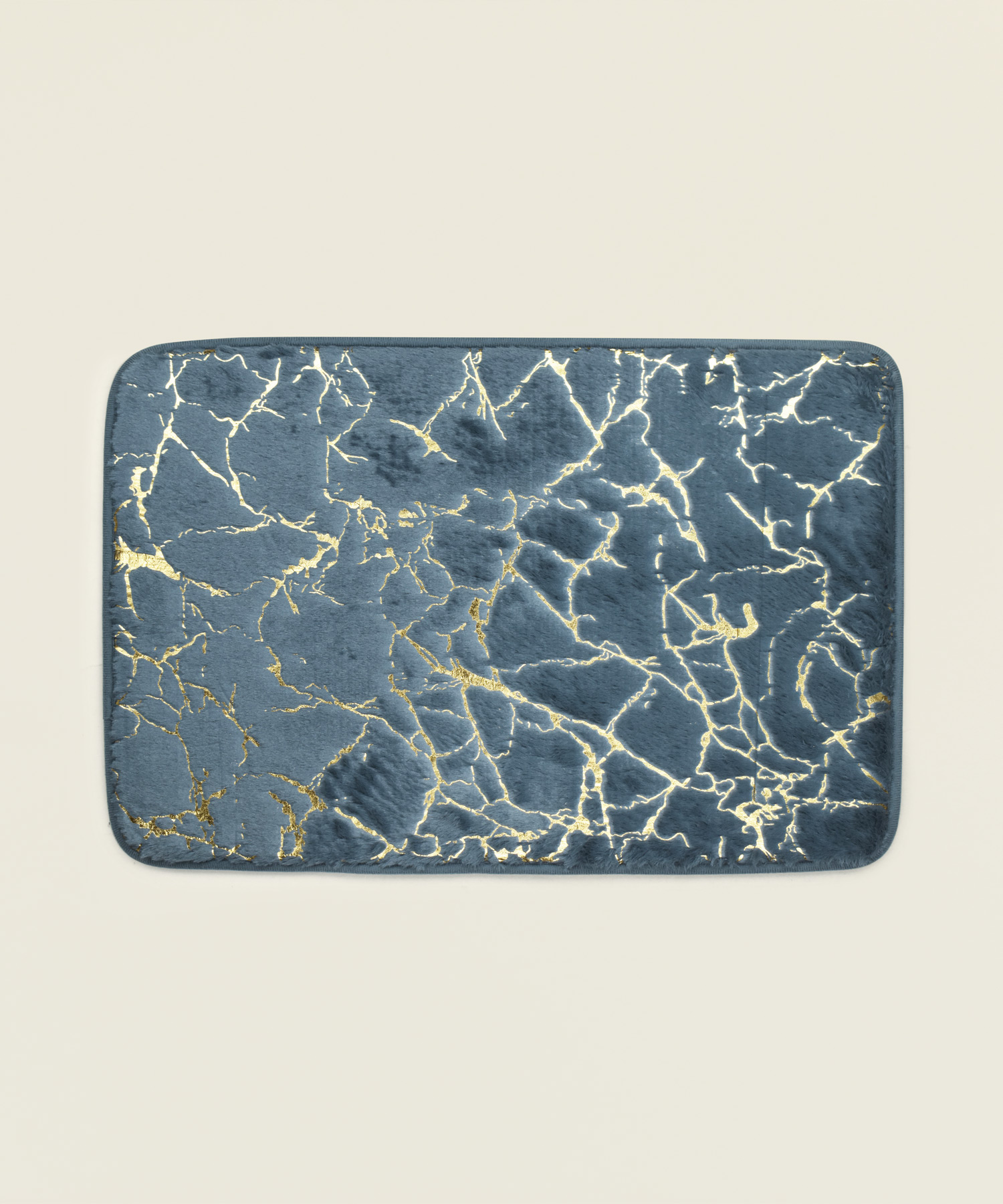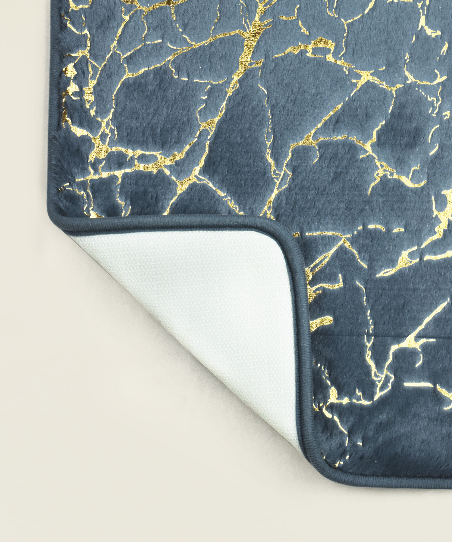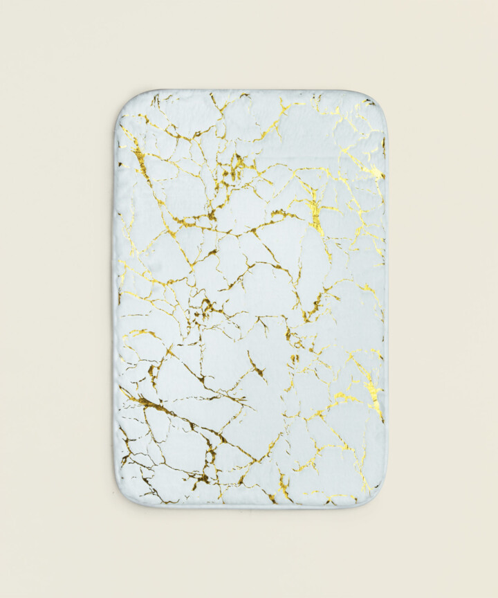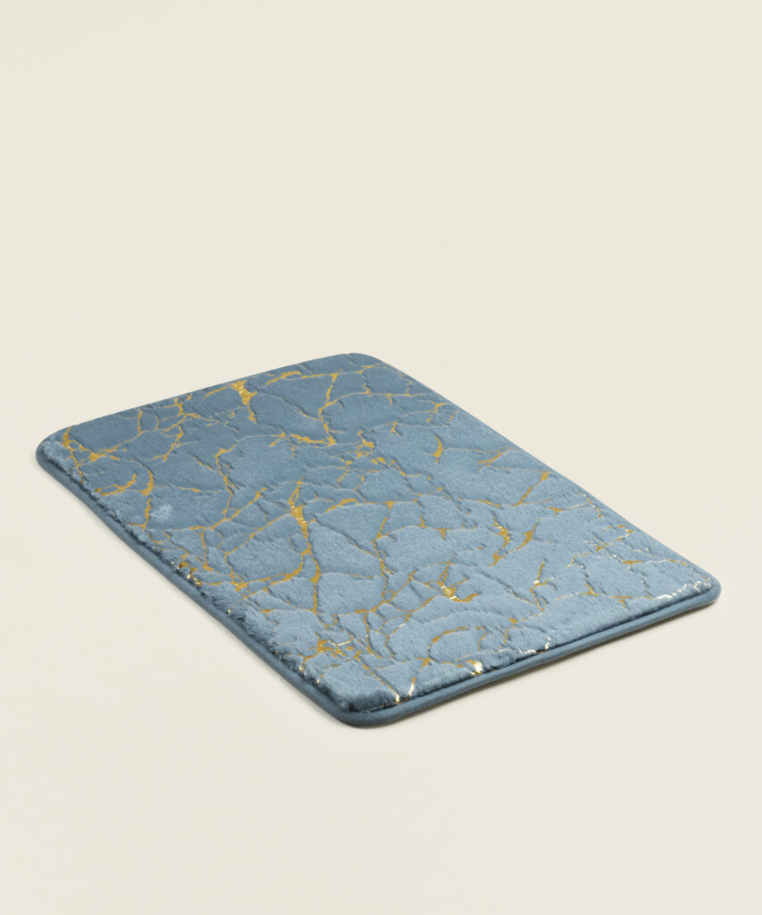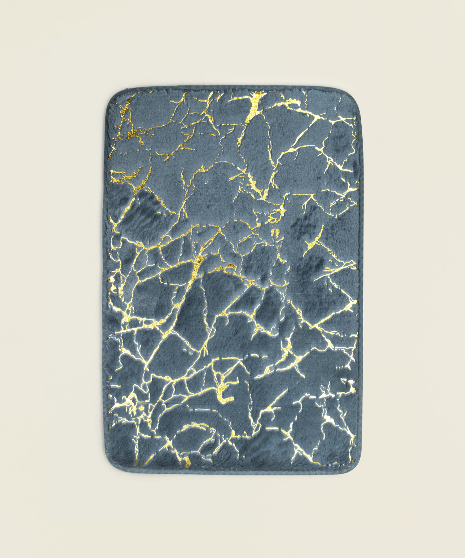 Το χαλάκι μπάνιου με διακριτικές χρυσές λεπτομέρειες προσφέρει άνετο πάτημα και ανανεώνει αισθητικά τον χώρο, συνδυάζοντας πρακτικότητα με μοντέρνα εμφάνιση.