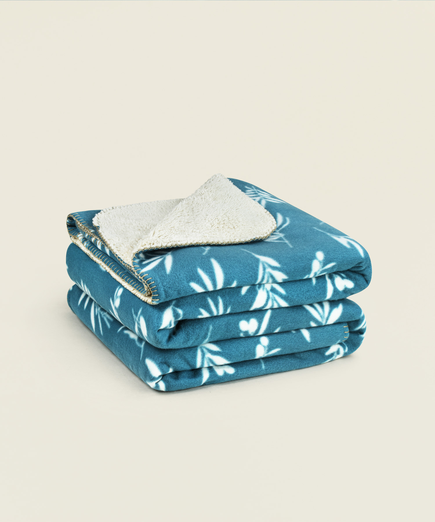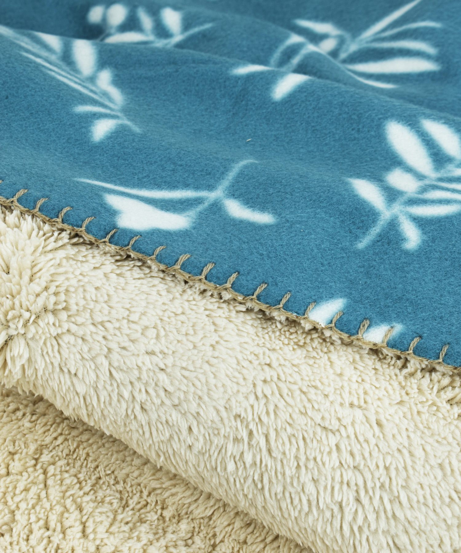 Διπλή κουβέρτα σέρπα polar velvet με απαλή, διπλής όψης υφή και κομψό σχέδιο με φύλλα σε μπλε χρώμα, ιδανική για ζεστασιά τους χειμερινούς μήνες.