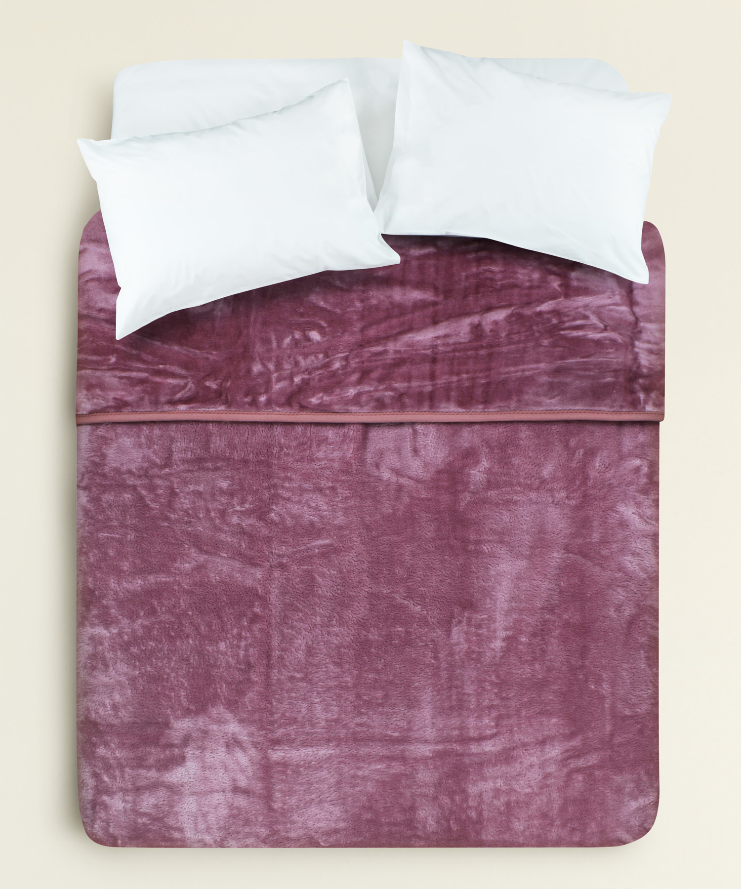 Απαλή κουβέρτα βελουτέ σε απόχρωση ροζ κοραλί, ιδανική για άνεση και ζεστασιά σε υπέρδιπλο κρεβάτι.