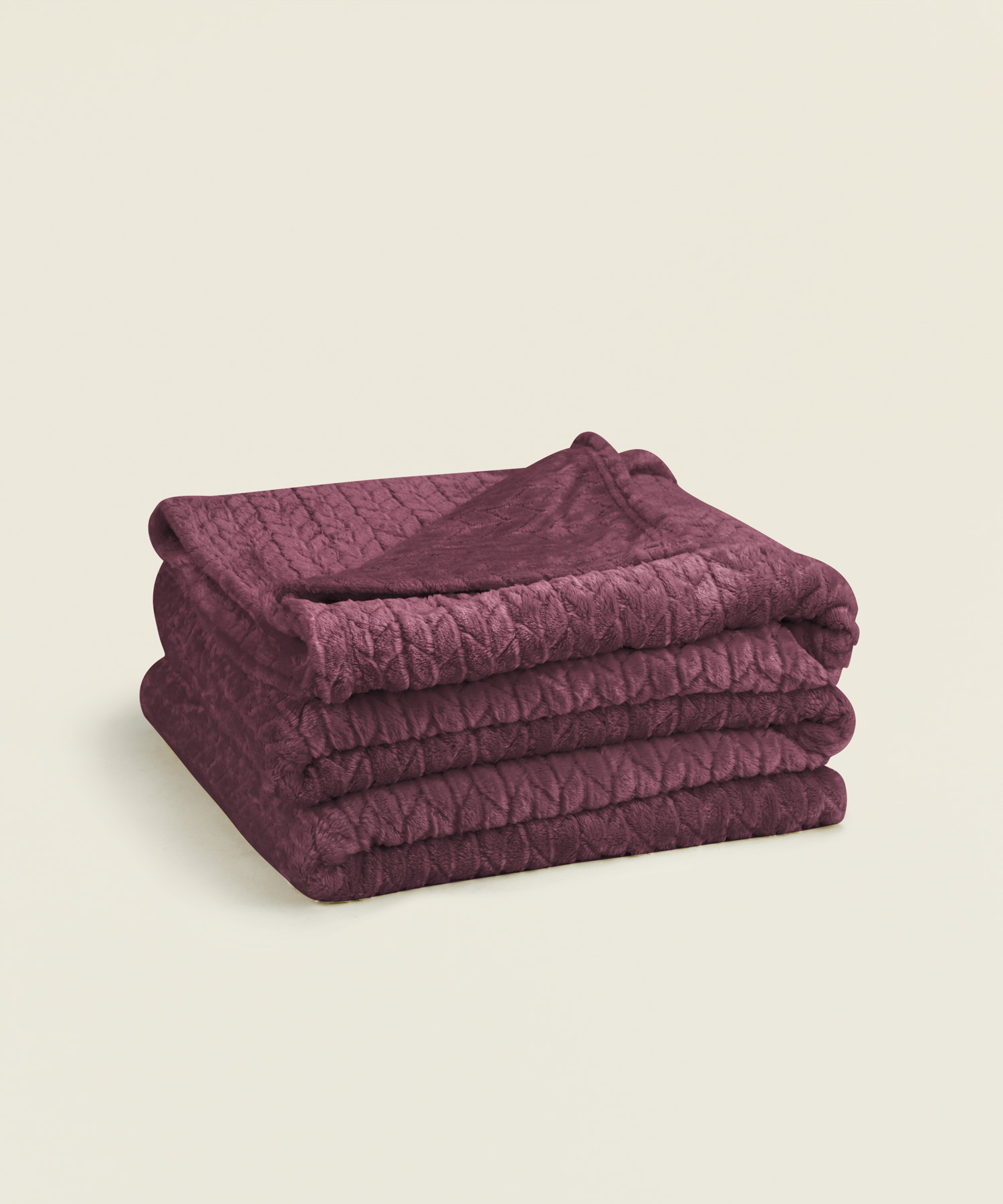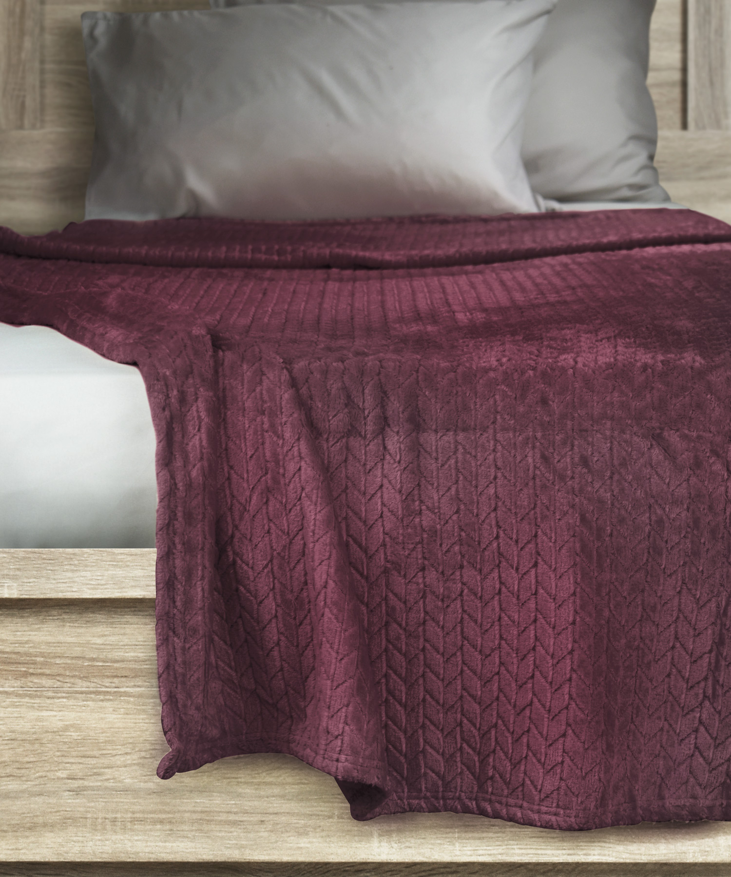 Μαλακή κουβέρτα flannel με ανάγλυφο σχέδιο chevron σε μπορντώ απόχρωση, ιδανική για ζεστασιά και διακόσμηση σε μονό κρεβάτι.